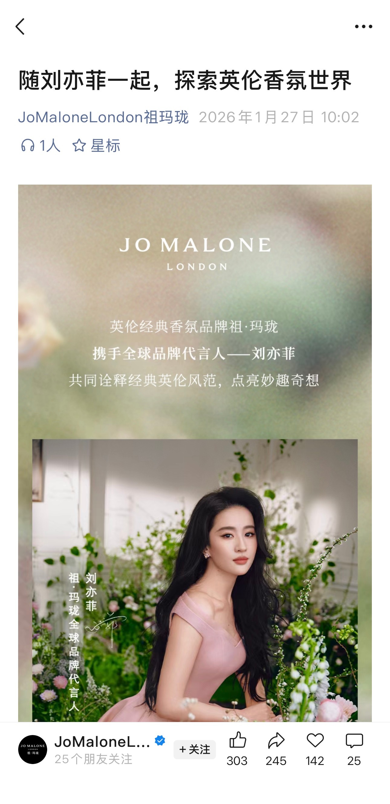 刘亦菲 支持祖玛珑首位华人全球品牌代言人刘亦菲 天降花神和Jo Malone适配度满分💯 顶级演员的实力 时代巨星的魅力 天仙带飞仙粉们刘亦菲祖玛珑全球品牌代言人
