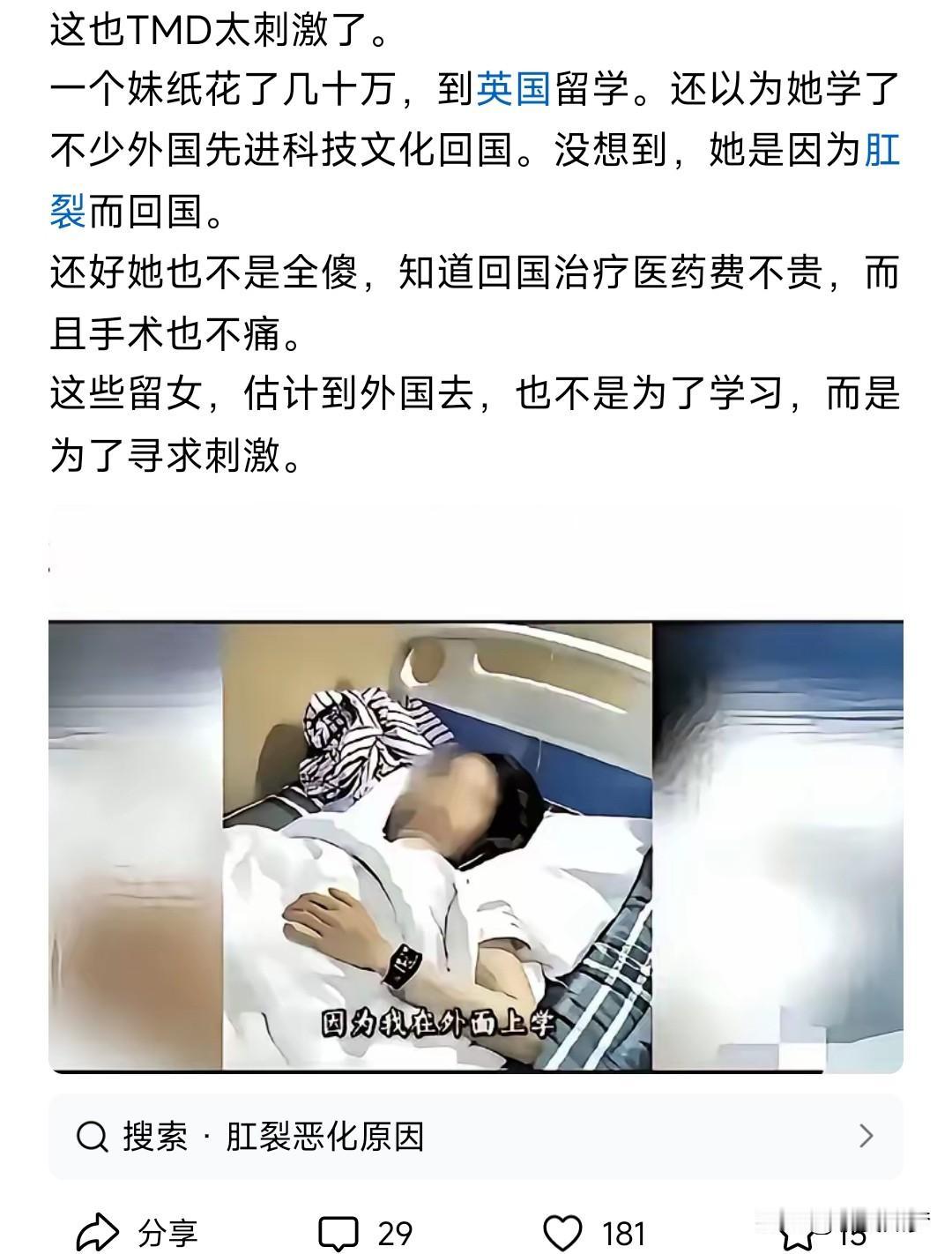 留学生这个群体非常复杂,这里面肯定有牢A说的那种生活堕落乱搞的,这个比例有多少不好说,但是这些人的存在却极大的败坏了整个留学生尤其是女留学生这个群体的名声。现在很多都是独生子女,如果可以的话出国留学还是慎重考虑。女孩子独自一人在国外,特别容易被狩猎,一旦沾染上什么国内碰都不能碰的坏习惯,真的就一失足成千古恨了。