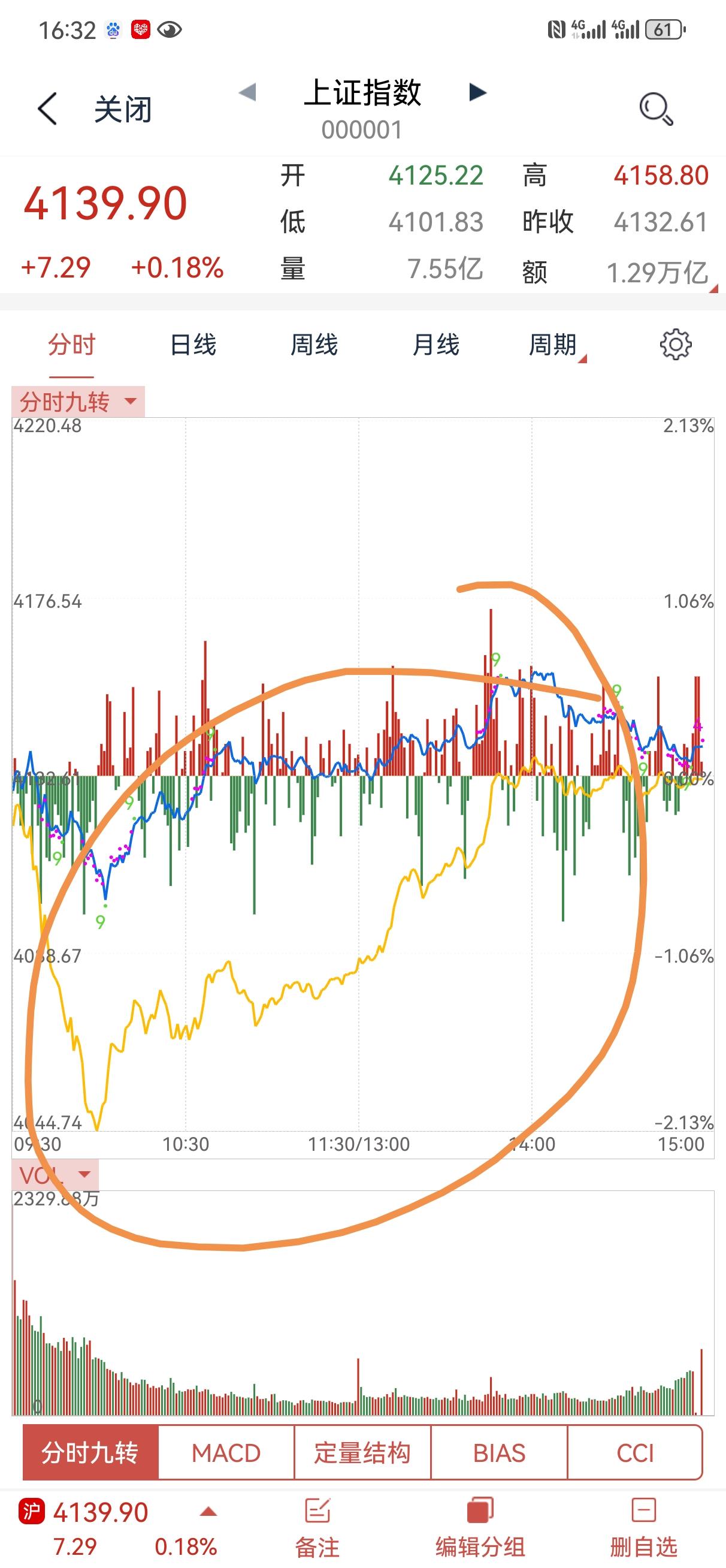 1月28日操盘笔记: 今天的大盘跌宕起伏,上证指数振幅不大,深证略大一些,但是个股有点水深火热,看看上证的分时图就很清楚,上午的时候四千五百家下跌,小盘股基本被摁在地上摩擦,指数基本靠石油银行保险黄金支撑着,所以显得没那么难看。到了下午这个情况得到一定的修复,看看代表小盘股的黄色曲线就很清楚。GJD的确这段时间从ETF撤退了一部分资金,但我认为这并不代表护盘资金大撤离,大盘就要大幅下跌了,大资金大机构调仓换股本来也是正常的,至少到目前为止,我并没看到有明显的信号表明大盘要大幅调整了。感觉是不靠谱的,数据才是最严谨科学的。大盘已经在一百多点的空间里震荡了十个交易日了,可以确定的是不会一直横盘在这里,而且时间也不会太久,不确定的是到底是上还是下。个人认为,调整周期横而不跌视为强势,那么调整完大概率还是要上升创新高,至于创新高后的走势,那要根据这个过程来进一步判断,综合量能变化,速度,市场情绪等综合指标来分析,所以我的结论是在大盘没突破4190前,不会有大的风险,至于后面有没有,现在并没有定论,走一步看一步呗,过早地下结论是没有根据也没有意义的! 明日操作计划:继续持股,等待明朗!