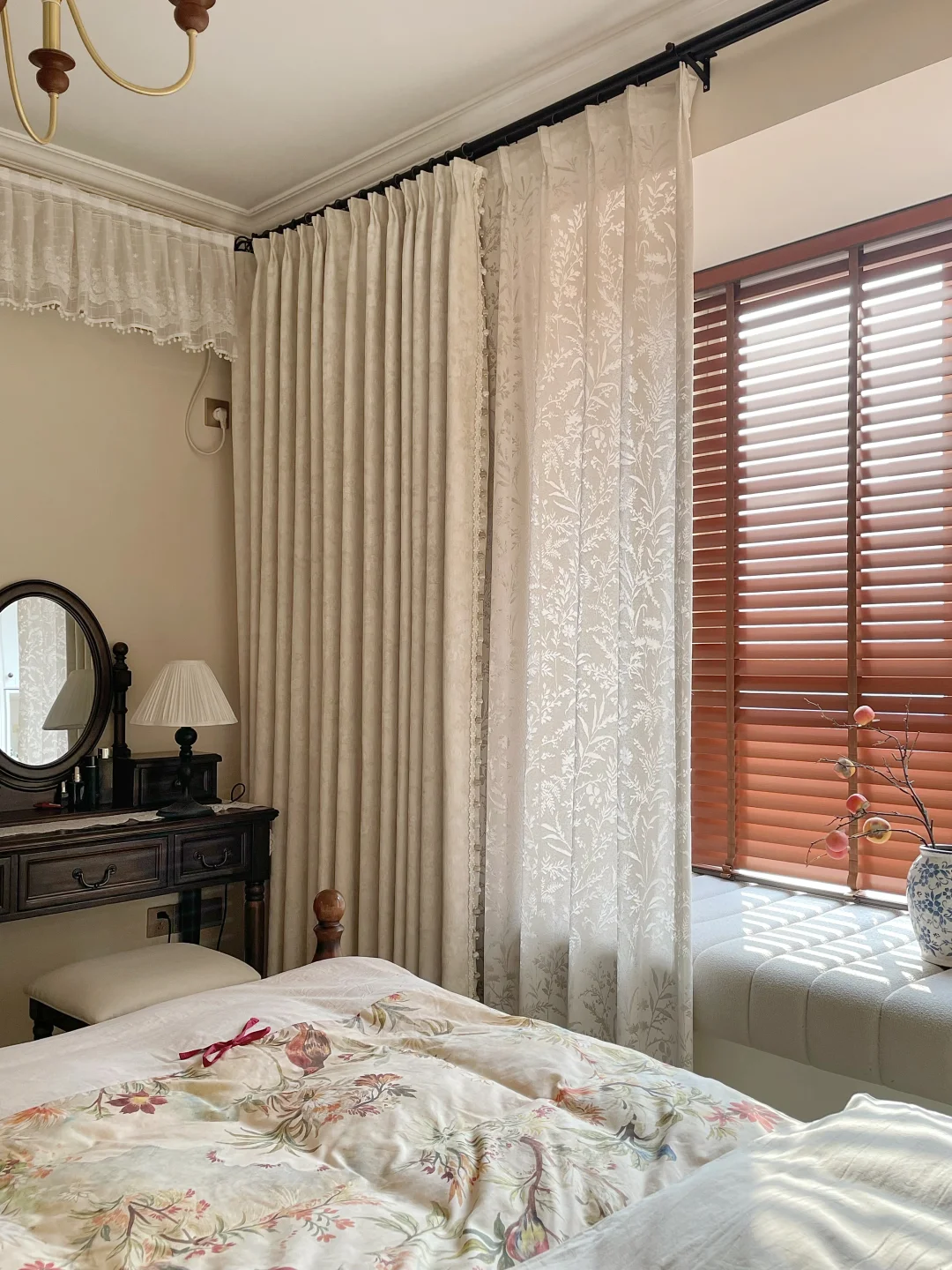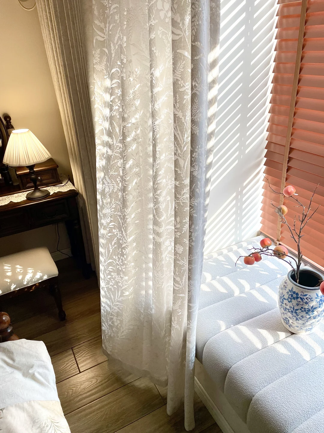窗帘选对真的成功翻倍!三千金家的莫里斯花+月枝影+栗子棕百叶组合,直接美到我心坎里😭
