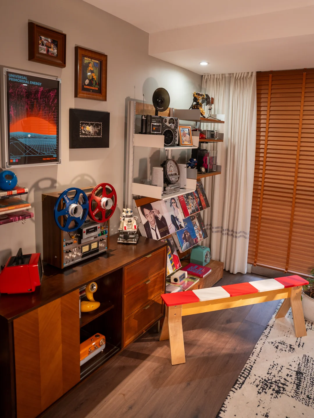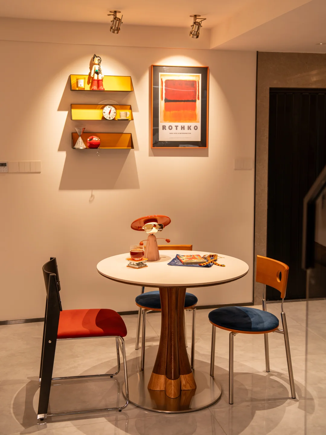 没有刻意的极简,只有满满的喜欢——把珍藏的老物件、复古杂志、异形灯具都安放在合适的角落,让复古未来主义和极繁风在空间里碰撞出松弛感。 不用在意别人眼里的“杂乱”,这里是我的充电站:窝在沙发看老电影,在餐桌旁喝手冲,每一件物品都在说“这是你的家”。 家的丰容,从来不是为了好看,而是为了让我们在喜欢的氛围里,好好给自己充个电