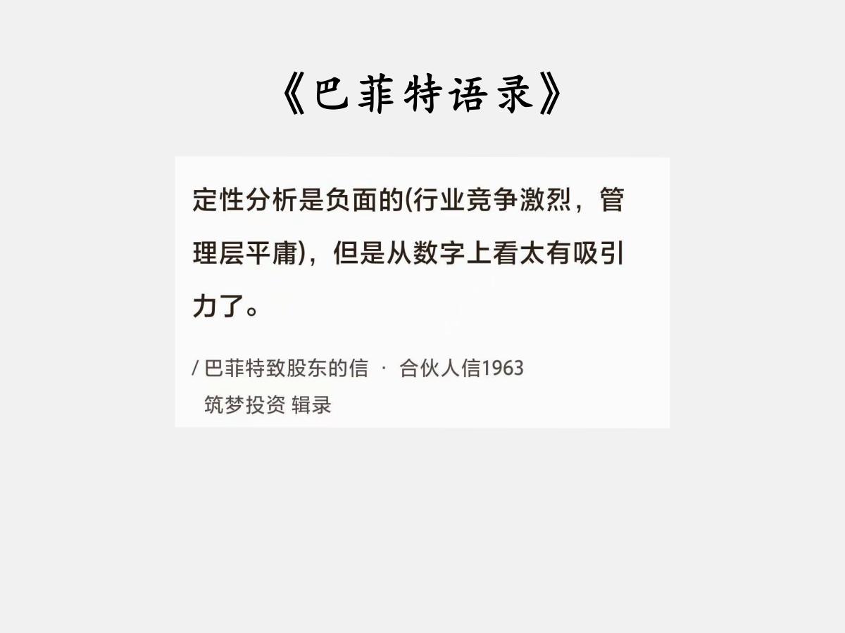 No.120巴菲特谈“价格才是硬道理” 巴菲特曰:“定性分析是负面的(行业竞