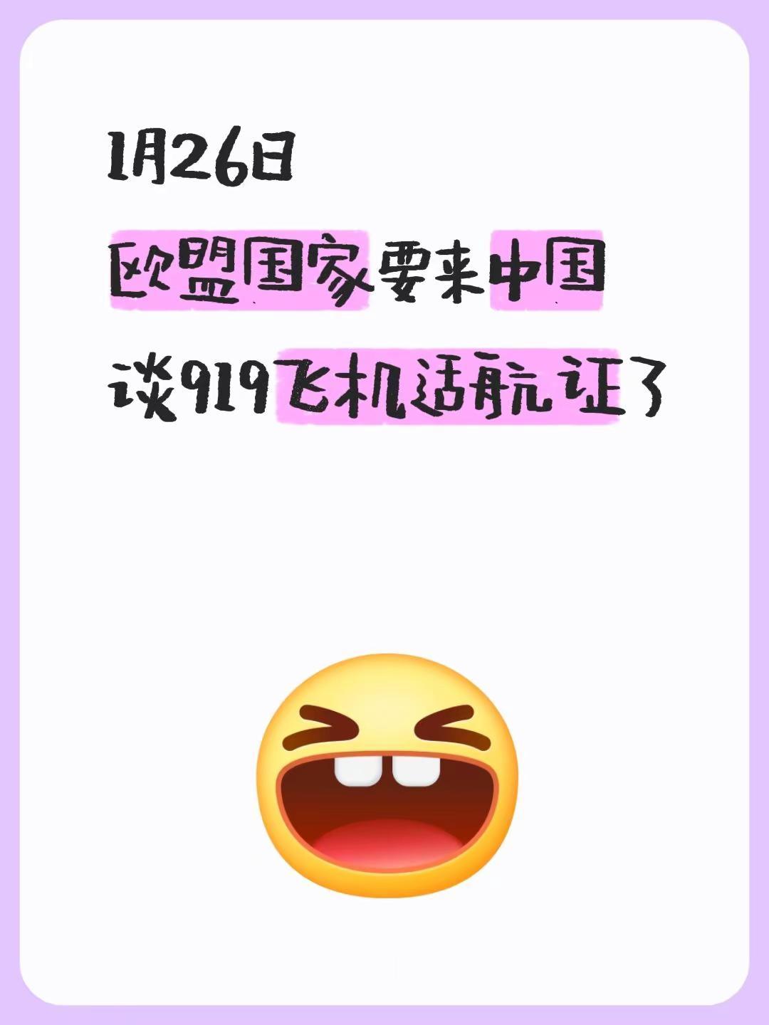 1月26日欧盟国家要来中国谈919飞机适航证了
