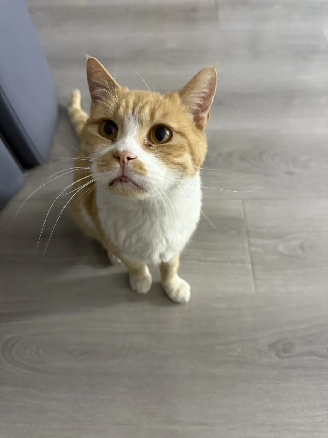 是刚入冬的时候捡回来的流浪猫 一看就是被遗弃过 捡到的时候已经绝育了。刚开始放在楼道里养了,后来走丢过一次找回来怕它出意外只能拿回家里了。它特别特别粘人,平常给狗狗关起来它就马上上床贴贴我。但是在我家过的没有那么开心,因为我家里两只狗狗小心眼总是看着它不让它吃饭。我也很喜欢它但是它性格太好了希望它能在更幸福的家庭过完猫生。本来想送到救助站,可是它有口炎怕救助站没时间给它吃药上药。也是因为有口炎一直都没有领养出去(检查过不是疱疹和杯状病毒)目前口炎轻微可以正常吃饭,如果有人领养我愿意出钱给它拔牙治好口炎。