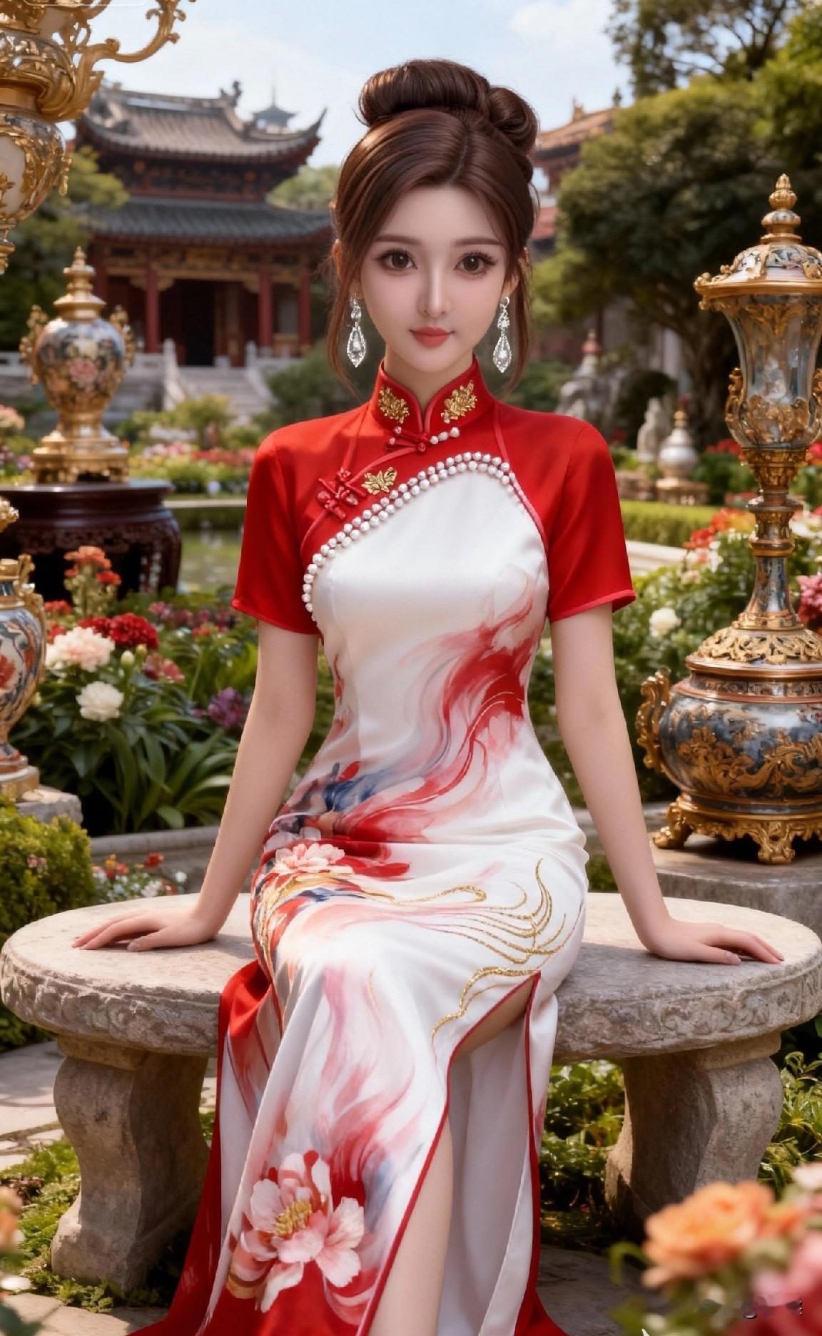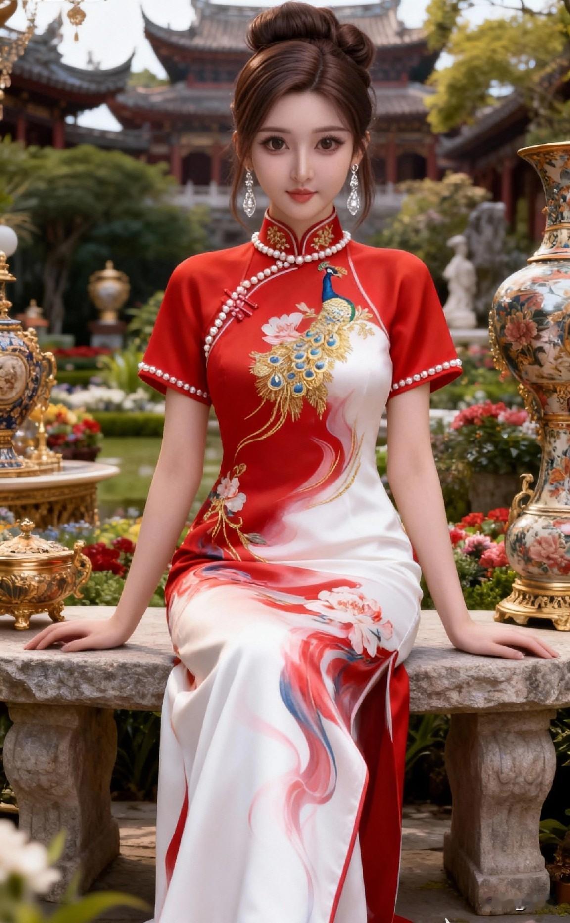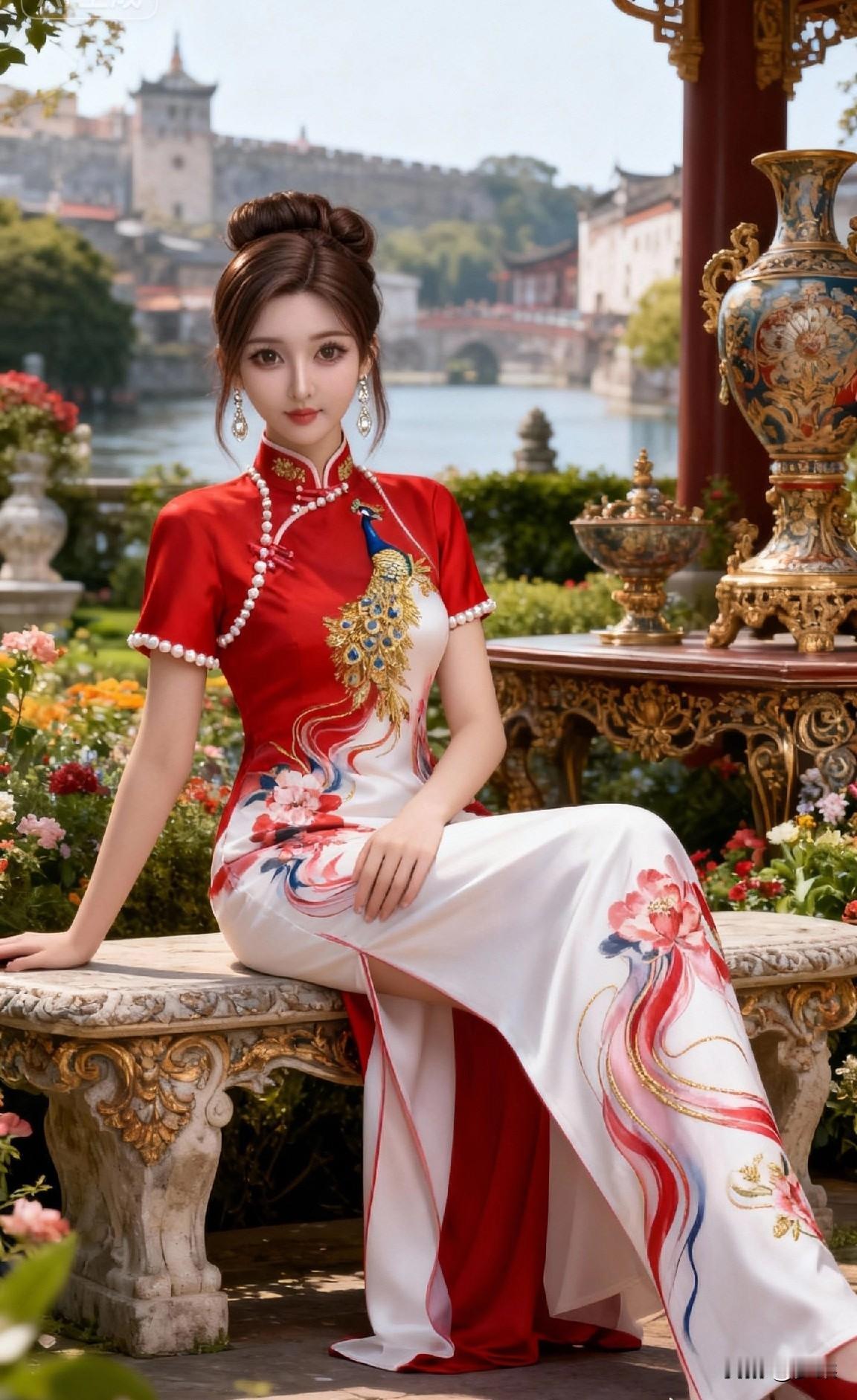 穿越时空的古典美人,红白相间的旗袍,韵味十足!