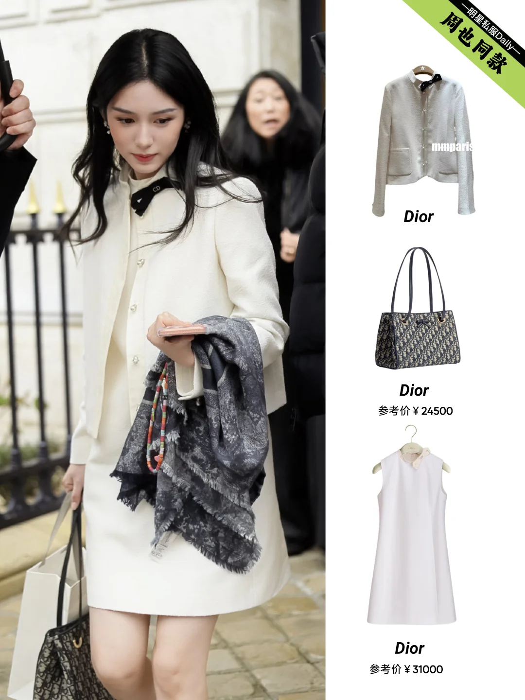 周也巴黎出街look,白富美穿搭真养眼!