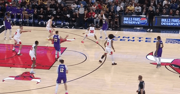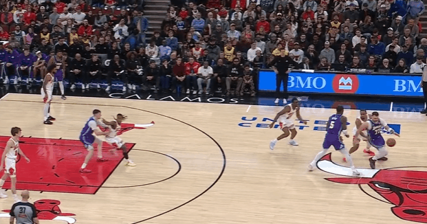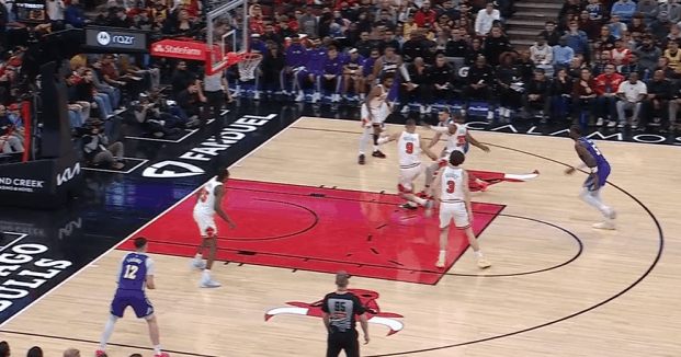 逐帧拆解:爆砍46分之外,“Luka Magic”的传球表现同样精彩P1詹姆斯从布泽利斯身后将球掏掉,东契奇抓下地板球后立即长传甩给快下的詹姆斯。P2持球推进转换抓早攻单打赫尔特,突破途中“脑后长眼”回身找到拖车进攻至右翼获得空位出手机会的八村。P3东契奇中圈位置持球操刀“西班牙挡拆”,行进间变向走Z字形吸引双人防守,随后高吊传球助飞下顺如入无人之境的艾顿。P4、5东契奇突破行进至篮下急停后“一百个假动作”随后不看人跳传弱侧底角空位拉拉维亚。P6东契奇罚球线接球后一个简单的投篮假动作直接骗过科比怀特,随后找到完全空位的斯玛特惩罚公牛防守。P7挡拆行进间同时吸引三人防守注意力,强侧空间过于拥堵,东契奇见弱侧吉迪回收垫防顺下海斯,立即跳起大横传找到弱侧外线空位的八村。P8东契奇刚过半场立即发动“Double Drag”,走右路突破行进间被双人夹死在边角,随后子弹传球精准直塞偷偷溜底线切入篮下获得空位终结机会的范德彪。P9 “神之一手”:东契奇刚过半场公牛立即执行非常激进的双人夹击,东契奇没有选择就近出球给上前接应的斯玛特,而是在吉迪上前换防到斯玛特后——用一记纵贯全场的长传找到远端底角切入篮下的拉拉维亚。NBA