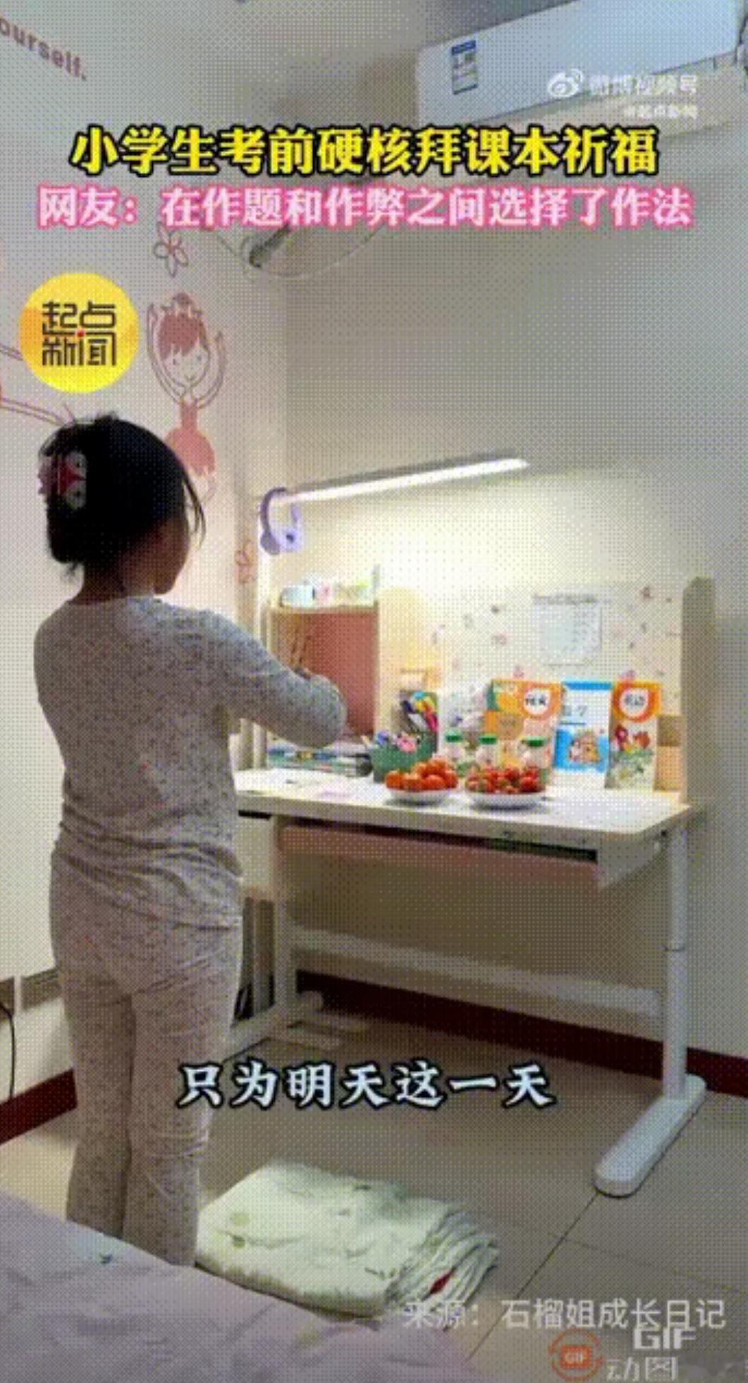 笑不活了!现在的小孩都太可爱了! 陕西西安一个10岁女孩在期末考试的前一晚,居然“以笔代香”,对着语文、数学、英语三个科目,行起了大礼。 女孩振振有词地说,“起早贪黑一百天,只为明天这一天,严寒酷暑寒风冽,又到考试前一夜,在此学生某某某以笔代香,拜见三位霸主,祈求明天的考试能够顺利。” 妈妈站在女孩身后,见状也是哭笑不得,她表示女儿上四年级了,语文成绩一直挺好的,另外两个科目就还需要努力一下。 网友看完这段视频,都觉得这个女孩的举动,实在是太让人感到搞笑了。有网友评论:这孩子哪是拜神,分明是在用幽默对抗压力啊!我们小时候考前紧张得睡不着,她倒好,自己编仪式感解压。其实挺聪明的,既宣泄了情绪,又锻炼了口头表达。现在孩子活得真通透,比死读书强多了! 这个孩子心里不空,将来一定是个很优秀的孩子!为孩子点赞! 对此,你怎么看?