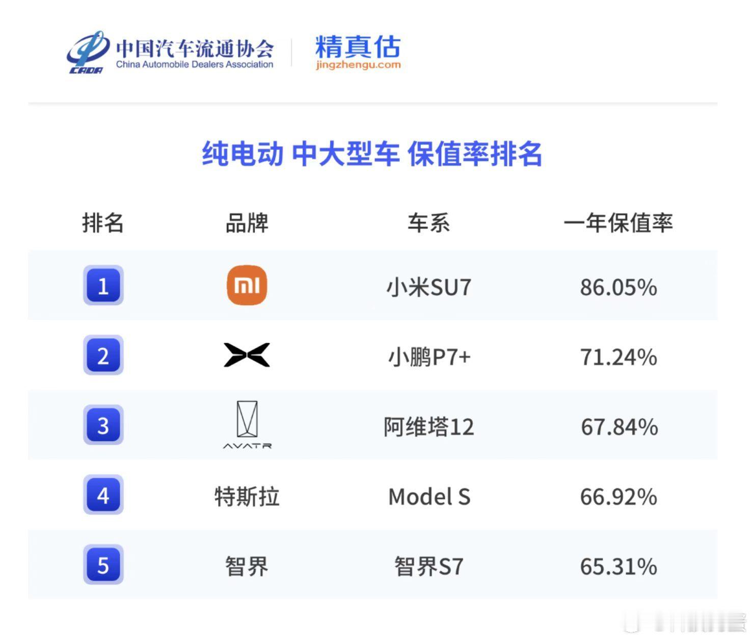 老实说看到小米SU7的保值率能冲到第一,狗蛋还挺意外的。一辆国产纯电车,开了一年居然还能值86%,这比之前两年的保值冠军都高,甚至压过了特斯拉的Model X和保时捷的Taycan。这说明什么?车子保值最硬的道理就两条,一要卖得好,二要真没短板。SU7销量冲上39万台,路上能见度越来越高,本身就让二手买家更放心。加上它从安全到智驾,没在哪个环节上明显翻车过,口碑立住了,二手市场自然抢着要。过去总有人说,买电动车就别想着保值。但SU7这事儿一出,算是把这个老观念给破了,好产品,市场就认,不分油电。当然,未来能不能一直稳住这个势头,还得看下一代产品。但至少第一仗,SU7打得相当漂亮。雷军回应小米SU7保值率第一名