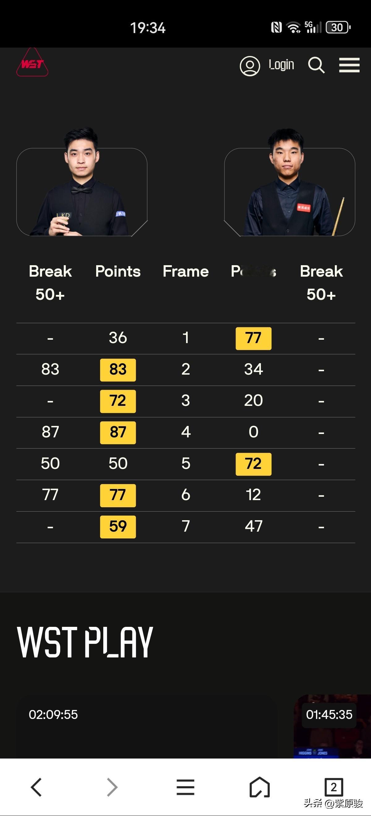 德国大师赛,肖国栋、斯佳辉晋级32强,张家玮被小特零封出局。 17点时段的比赛,肖国栋5-2击败罗比·威廉姆斯,肖国栋状态不错,一上来就打出135分清台, 接下来肖国栋又连下两局,第4局,威廉姆斯扳回一局。之后双方各胜一局。第7局,肖国栋75-0锁定胜局。 斯佳辉与范争一的中国德比刚刚结束,结果也是5-2。前4局,斯佳辉3-1领先,第5局,范争一72-50逆转扳回一局。 接下来,斯佳辉连赢两局,其中第7局,比分比较胶着,范争一追到47-53,只要打进最后的粉球和黑球即可逆转,获得一线生机。可惜粉球不进,而斯佳辉长台薄进粉球,比较戛然而止。 张家玮与特鲁姆普的比赛没有意外,比赛呈现一边倒,最终张家玮0-5被零封出局。 22点还有3场中国球员的比赛,其中一场德比,它们是:赵心童vs江俊,龙泽煌vs火箭奥沙利文,刘宏宇vs塞尔比。 中国球员,加油!