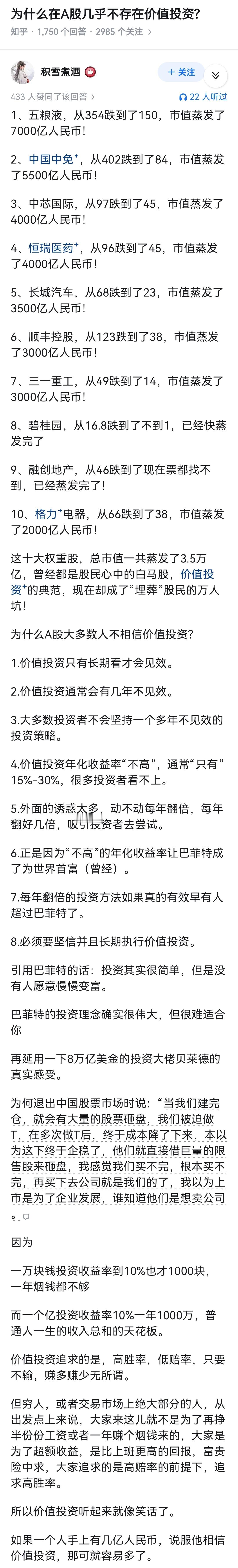 为什么在A股几乎不存在价值投资?