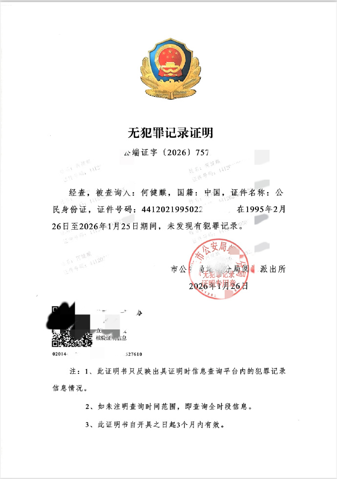 何健麒工作室晒了何健麒无犯罪证明,但有一说一哈,这个只能证明过往无犯罪记录在案,但无法为潜在未曝光的犯罪证明。 何健麒公开无犯罪记录证明
