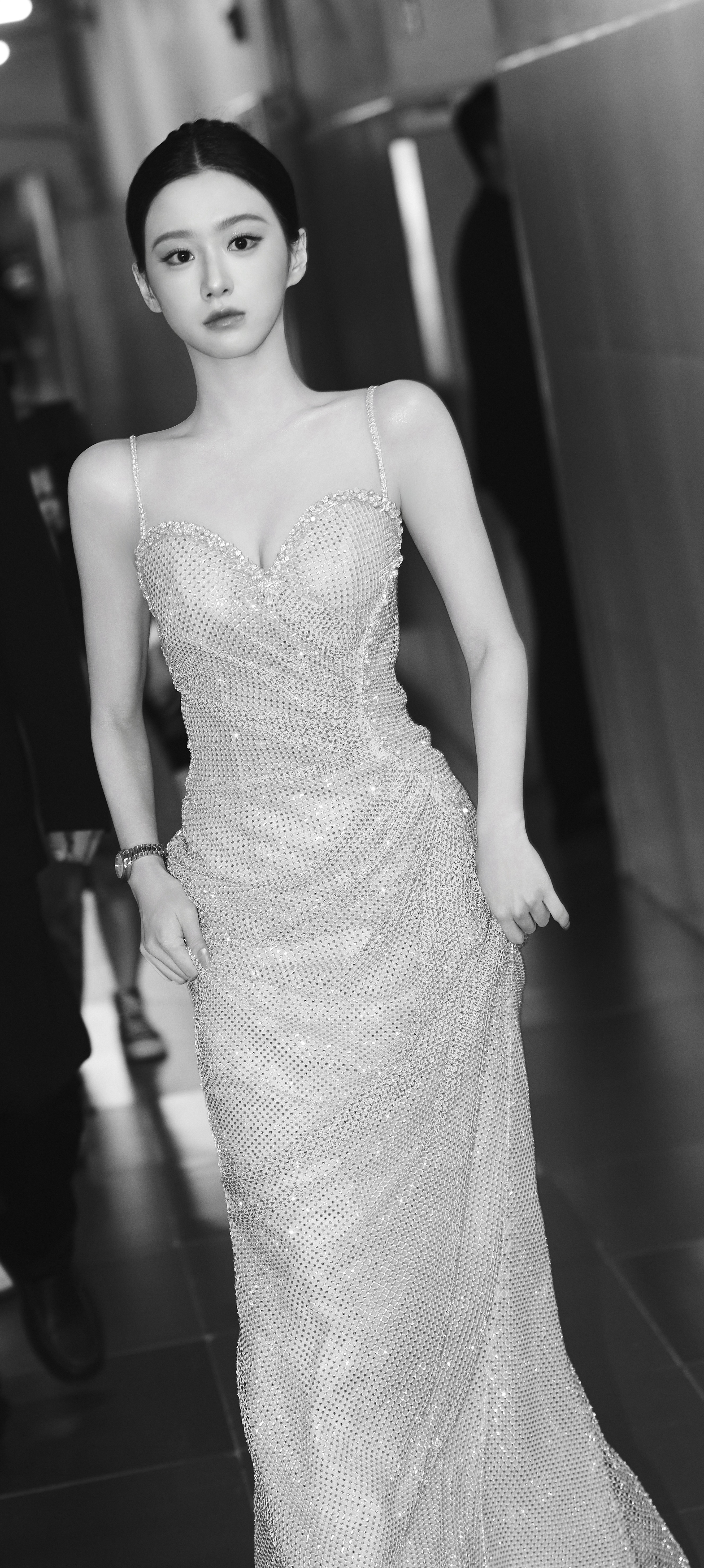 包上恩时尚穿搭壁纸:一袭吊带抹胸裙展婀娜,这妆造适配度拉满。包上恩