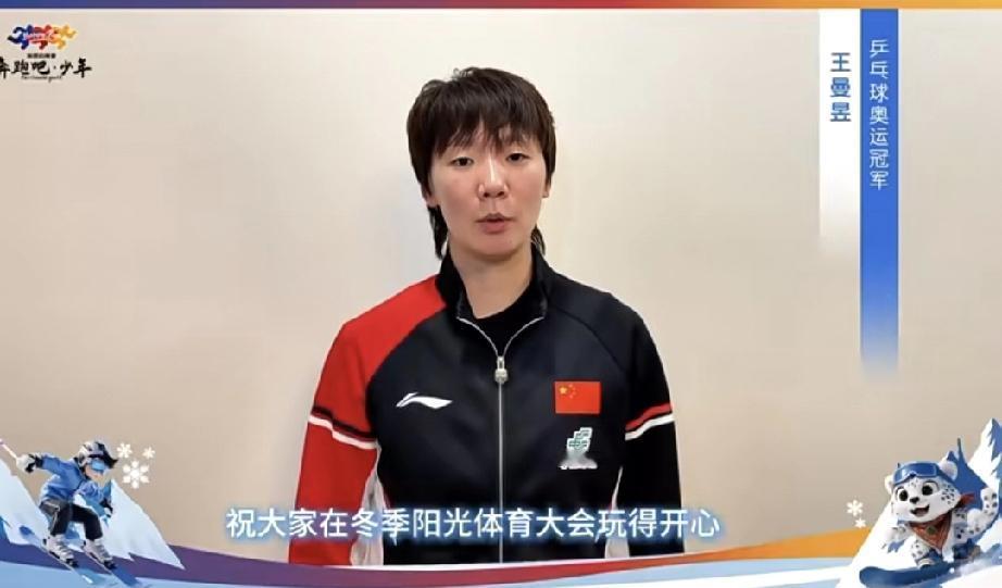 王曼昱又来送口播祝福啦!这次是与潘展乐等运动员一起为冬季阳光体育大会打call加油! 只要没有比赛,曼昱就低调的完全消失在公众视野,看看曼昱拍的口播,也算球迷以解相思! 不过,很快国乒就会启程前往海口参加亚洲杯比赛,祝福曼昱一切顺利!
