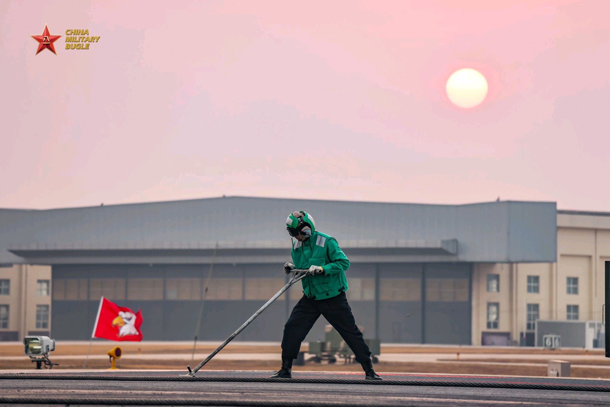 海航大某基地,阻拦着舰训练歼-15阻拦着陆、阻拦索复位/检查/更换、跑道异物检查等 烽火问鼎计划中国海军