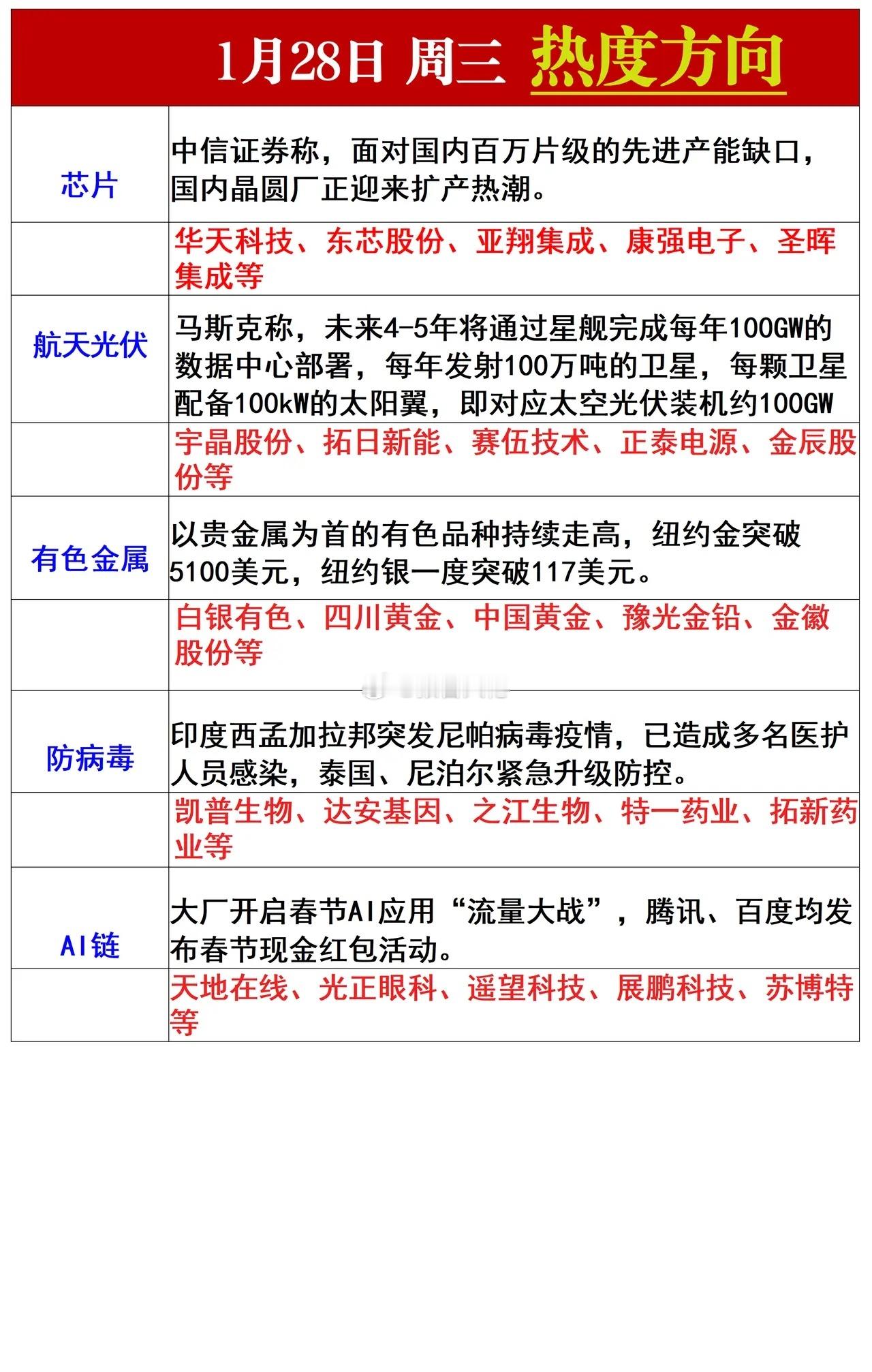 周四(1月28日)思路交流,值得关注的六大热门方向1.商业航天航天电子、信维通信