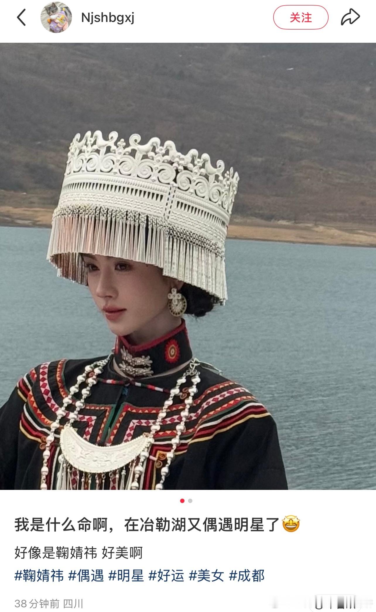 鞠婧祎在冶勒湖被偶遇,好美啊 冶勒湖偶遇鞠婧祎