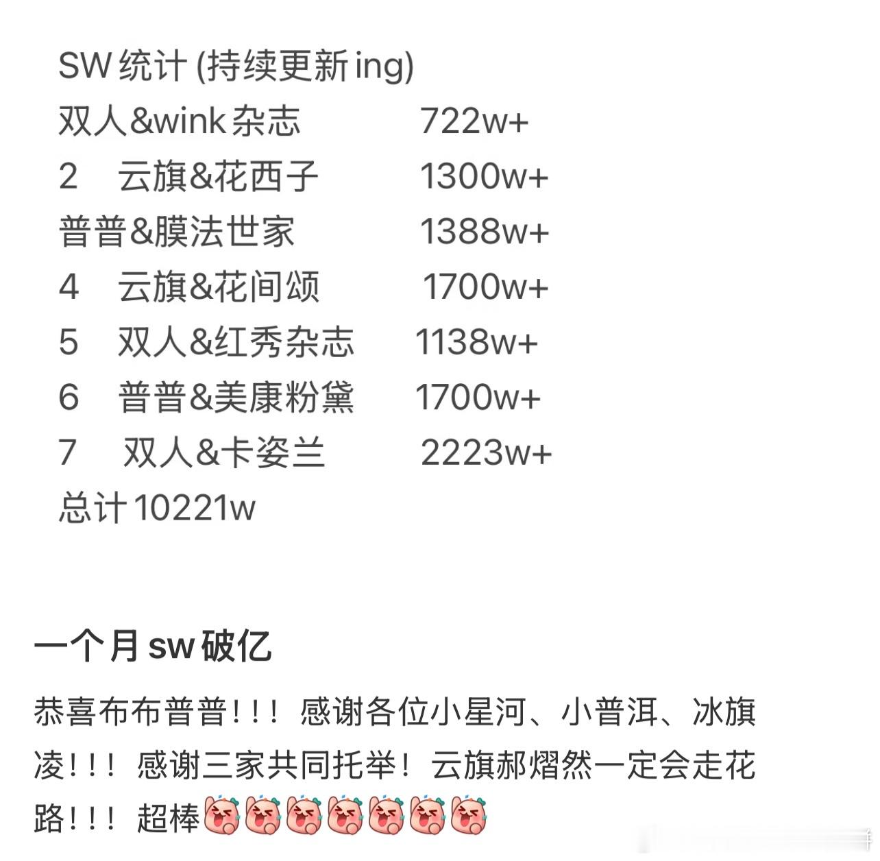 天啊,云熠星河一个月内的SW已经破亿了他们算是10.0?