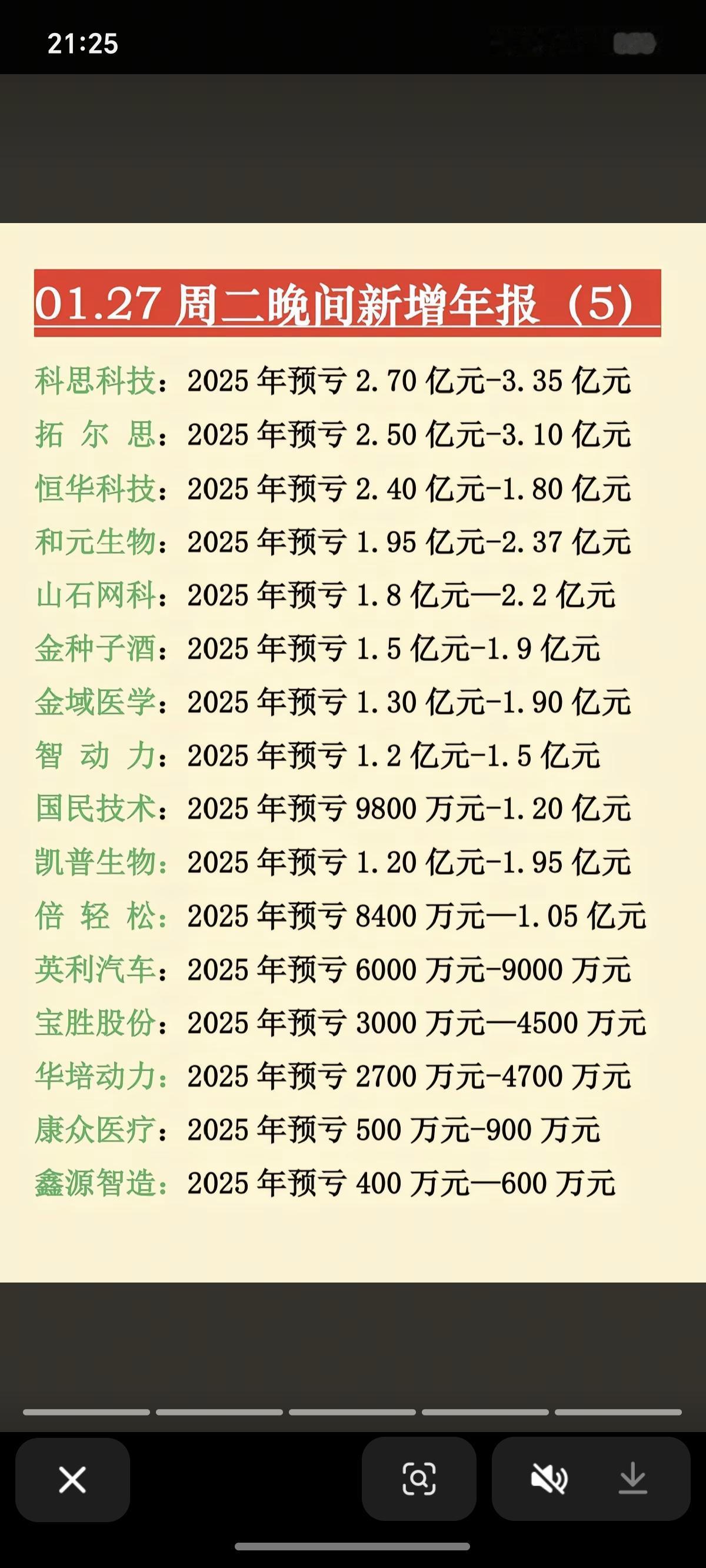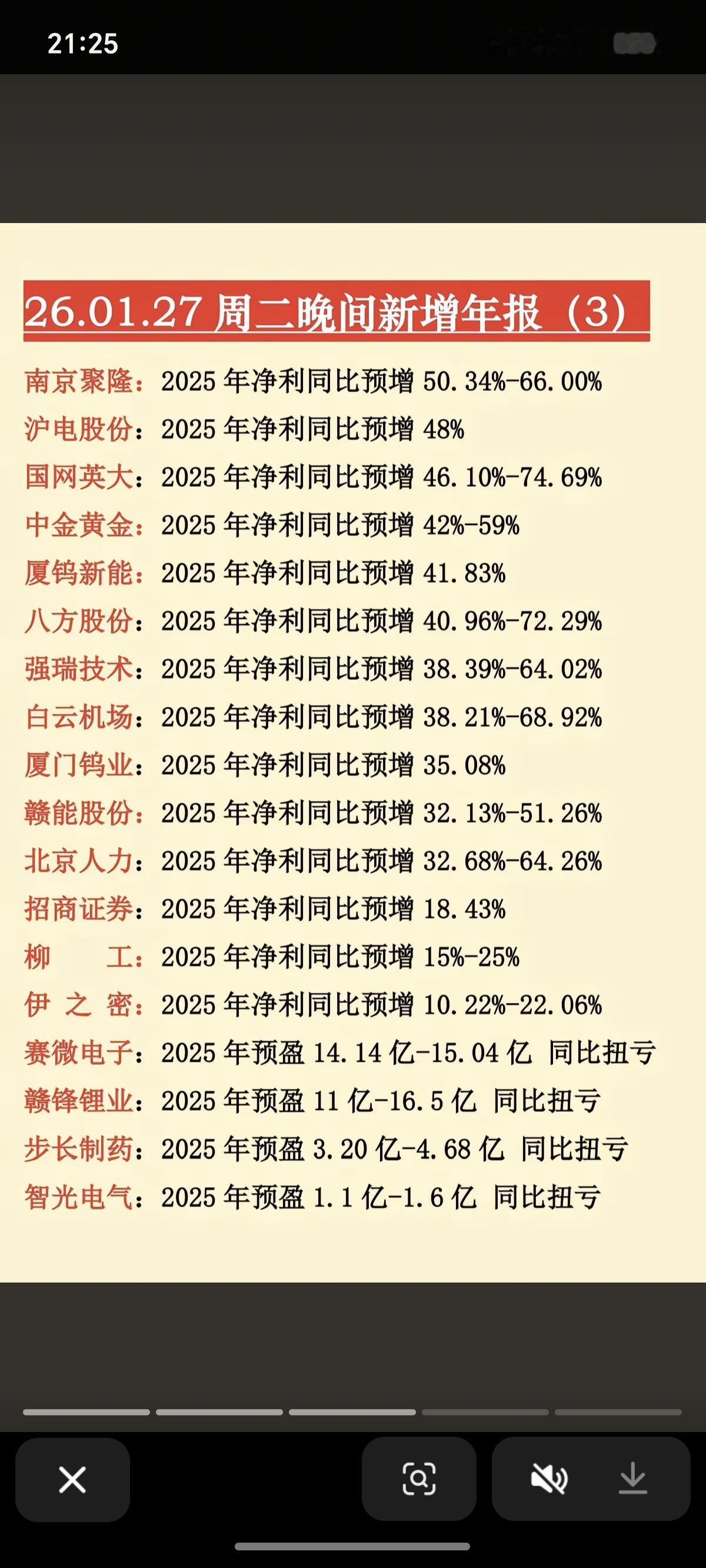 1.27周二 新增:上市公司年报业绩预告 年报业绩预增,可以择机参与。