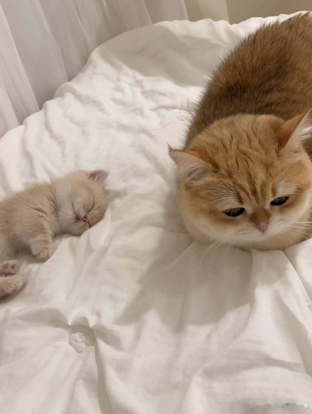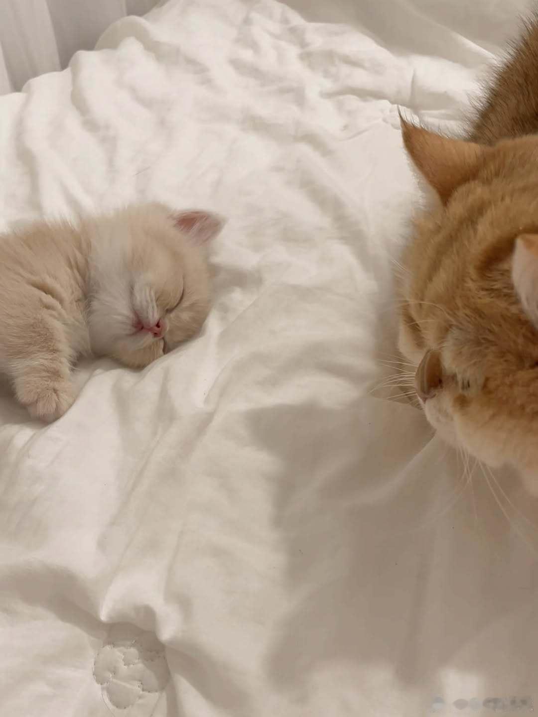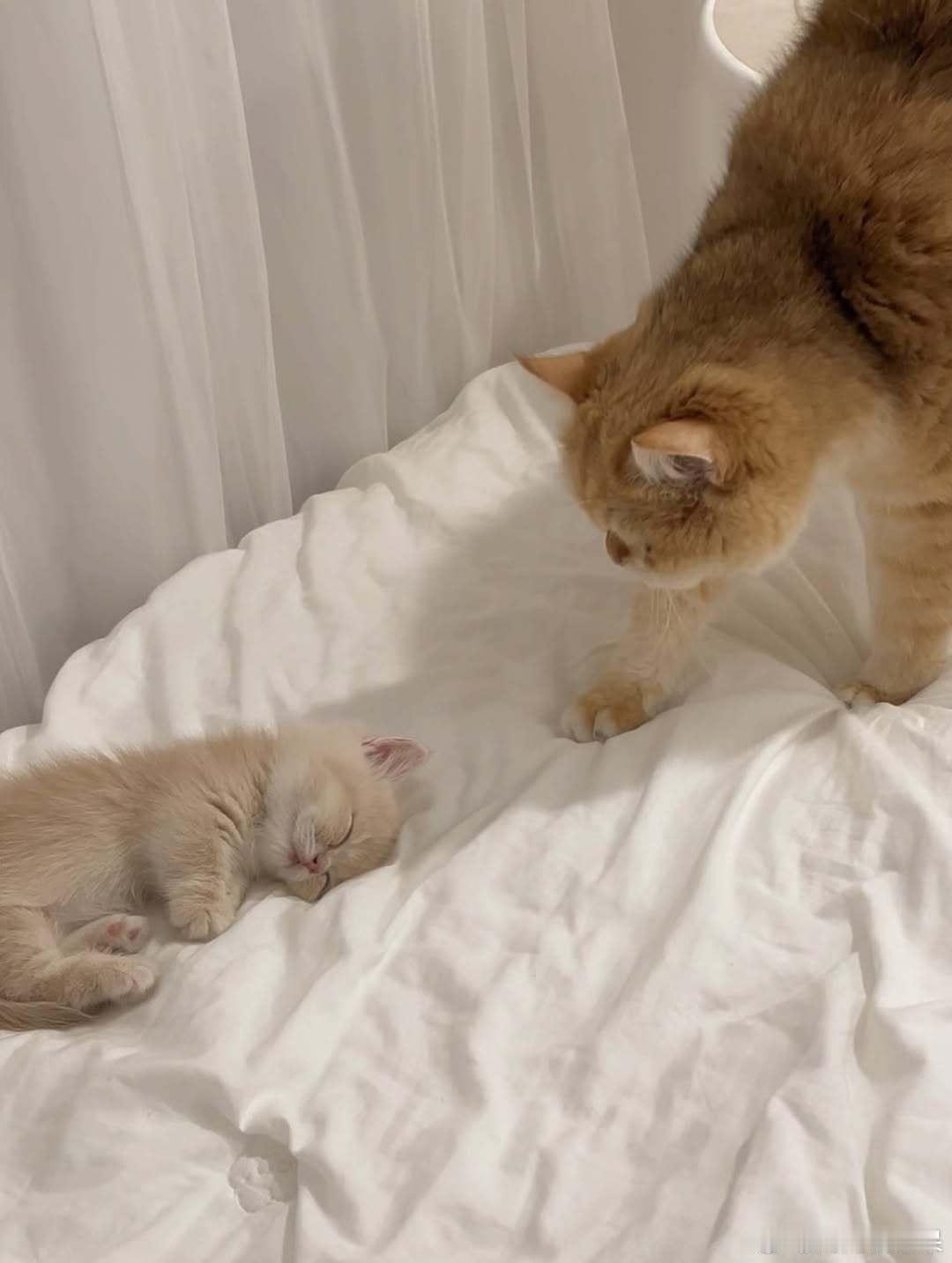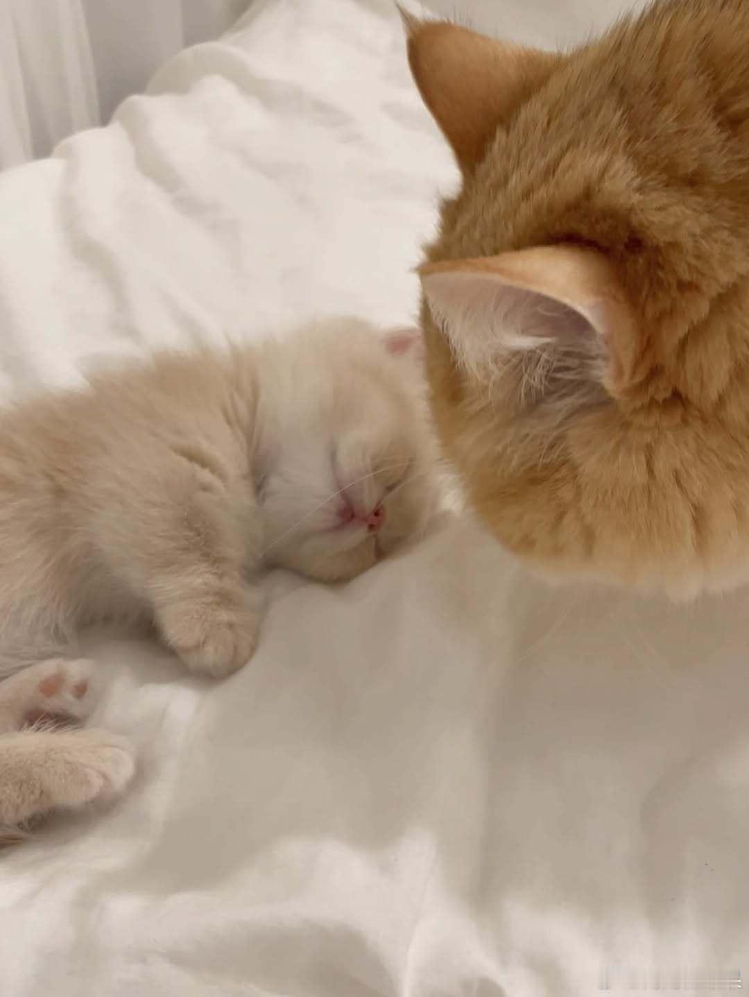 原住民猫呆在熟睡的小猫身边..cr:hongcha_83