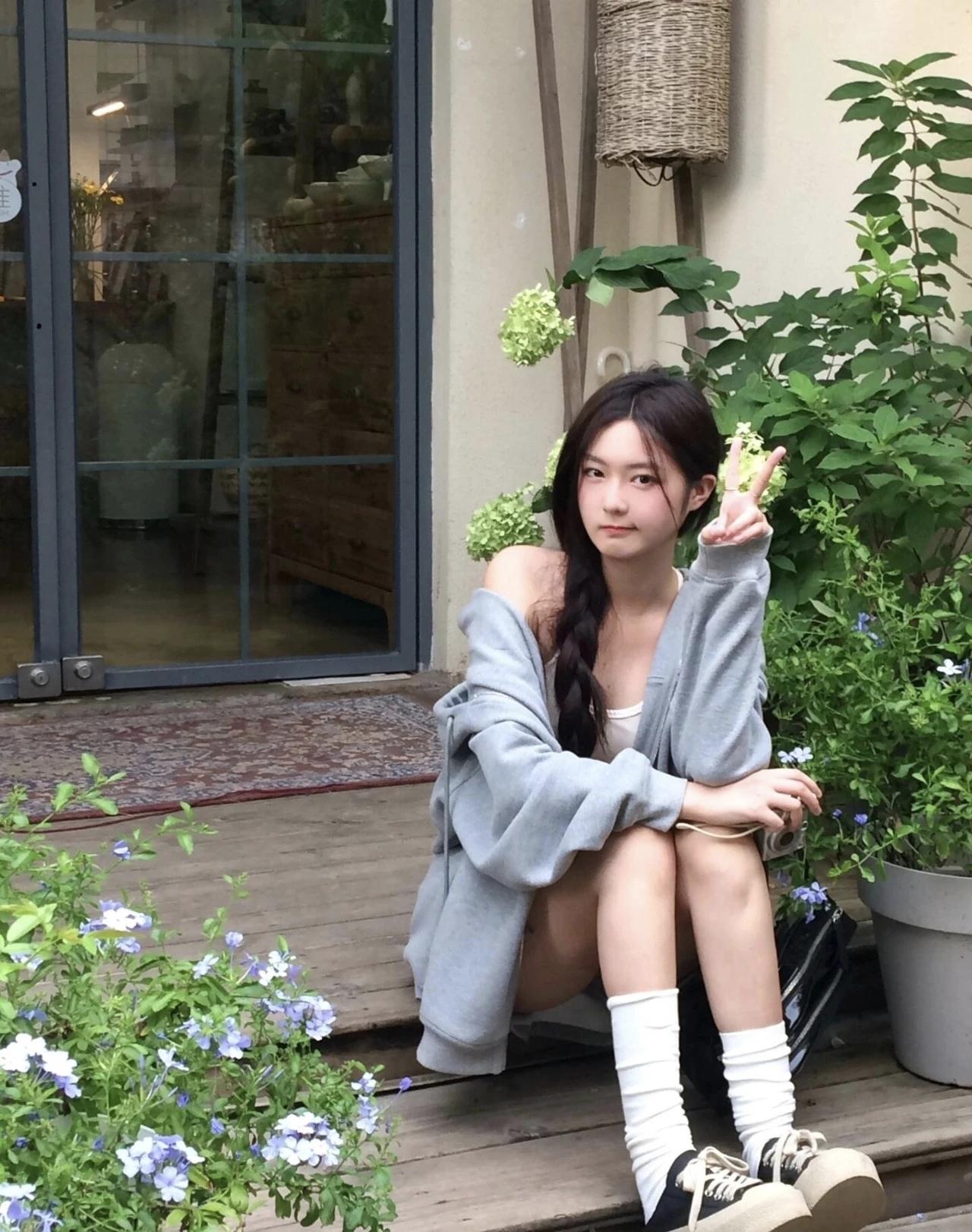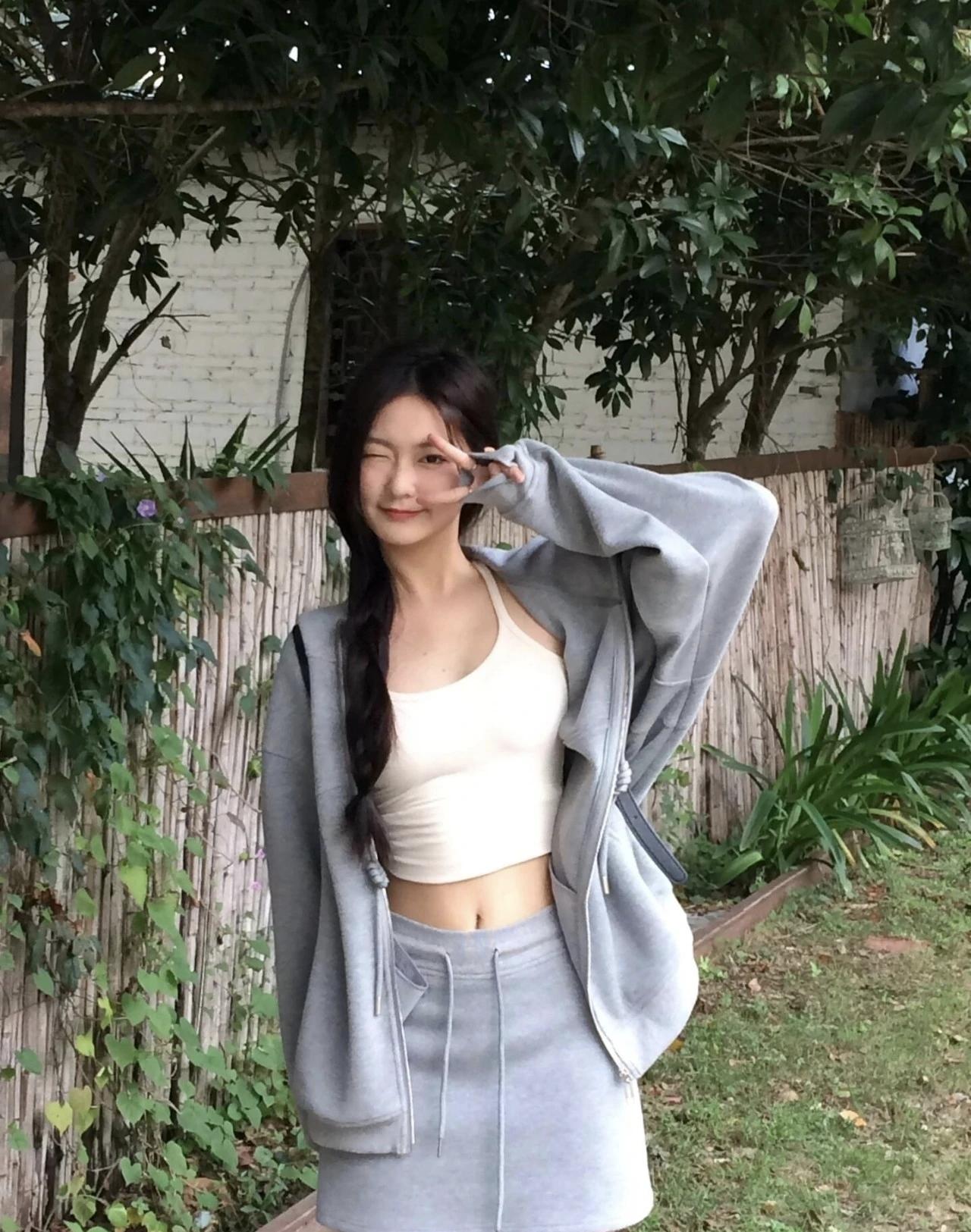 🌿 把慵懒穿在身上,宽松的卫衣套装配吊带,刚好适配院子里慢悠悠的风。在绿植包围的角落比个耶,今天的快乐是松弛感给的。