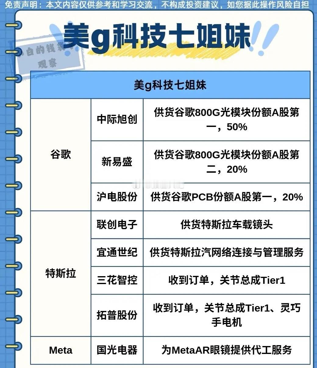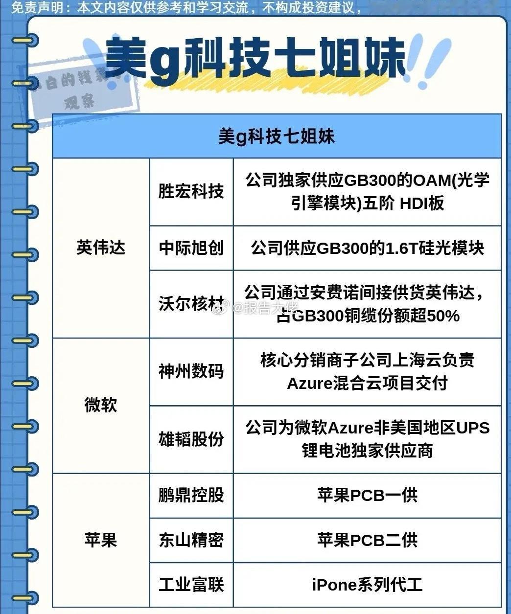 热点题材梳理:美股科技七姐妹相关配套产业链梳理