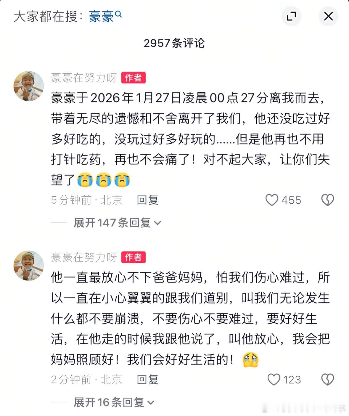 之前说给一个小男孩捐款,他叫豪豪在努力呀,今天刷到他已经走了,他活得好辛苦,希望下辈子对他好一点。愿每个人身体健康,这是最大的财富。