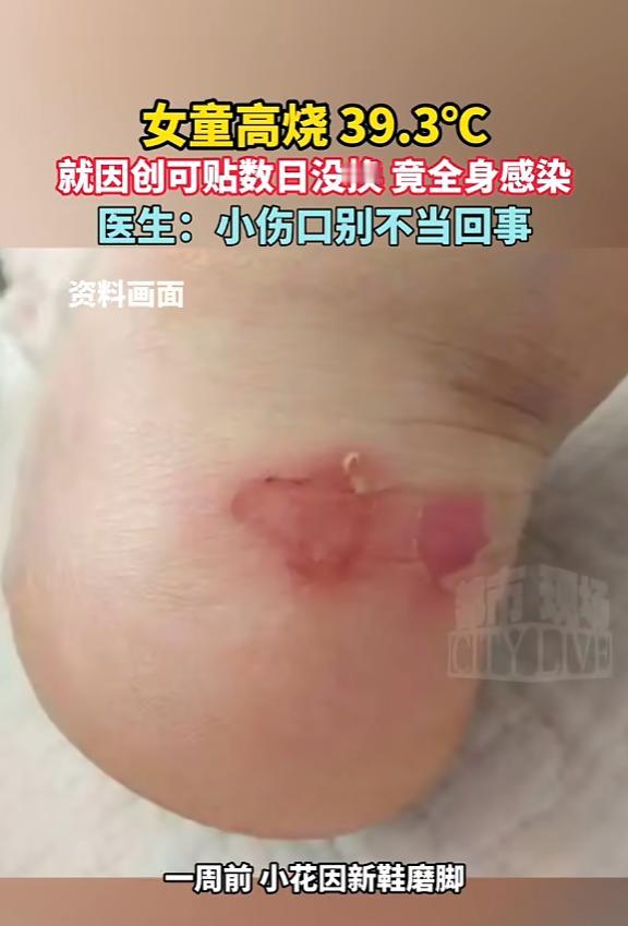 “悲剧还是发生了!”近日,浙江诸暨,一女孩新鞋磨脚, 家长随手给她贴了张创可贴,结果过去一周都忘了换,最后引发全身感染,高烧不退,被紧急送往医院治疗,还是医生在查房时,发现了脚后跟的创可贴,才确定感染源。网友:家长心真大! 诸暨市人民医院的儿科病房里,体温计上的数字停在了39.3℃,这个刺眼的高温,给孩子的身体拉响了无声警报,医生给孩子验血后,化验单上的结果更让人揪心,白细胞计数大幅飙升,明确指向了全身性感染。 可让人头疼的是,医生给孩子做肺部听诊,结果显示正常,呼吸道病毒检测也全是阴性,就像明明知道身体出了大问题,却怎么也找不到感染的源头在哪,诊疗一度陷入困局。 这事要从一周前说起。小女孩穿了妈妈新买的鞋子,脚后跟被磨破了一块皮,不算严重就是普通的小擦伤,家长的处理方式也很随意,和大多数人遇到这种情况一样,随手找了张创可贴,往孩子磨破的地方一贴,就没再管过,谁也没料到就是这张不起眼的创可贴,成了后续危险的导火索。 家长大概是彻底忘了这事,整整七天,既没揭开创可贴看看伤口愈合情况,也没更换新的,就任由创可贴一直贴在孩子脚后跟上,他们以为贴上创可贴,伤口就有了保护,能自行愈合,却不知道这种不管不顾的做法,恰恰犯了护理的大忌。 创可贴包裹的密闭环境,潮湿又缺氧,成了细菌滋生的绝佳“培养皿”,尤其是耐甲氧西林金黄色葡萄球菌这种顽固的耐药菌,最偏爱这样的环境,它们在创可贴的掩护下疯狂繁殖。 长时间不换药让孩子破损的皮肤屏障失去了防御能力,细菌趁机侵入血管,顺着血液扩散到全身,这才引发了那场找不到源头的高烧。 直到孩子入院第二天清晨,儿科副主任刘丽查房时,才揭开了这个隐藏的谜底,当时刘医生掀开被子给孩子做全身查体,目光无意间落在了小女孩的左脚脚后跟上,那里贴着一张边缘发黑、已经微微卷起的创可贴,看着就像是贴了很久的样子。 这张创可贴太不起眼了,就像每个孩子童年里都有过的小伤口印记,很容易被忽略,但刘医生没有放过这个细节,她轻轻撕下胶布,一股难闻的脓腥味瞬间扑面而来,孩子脚后跟的皮肤早已红肿溃烂,下面还形成了一个积满脓液的深坑,感染源终于找到了。 找到病灶后治疗就有了方向,小儿外科医生立刻给孩子做了切开引流手术,把伤口里的脓液彻底清理干净。效果来得很快,当天下午孩子那居高不下的体温就明显下降,一直紧绷的警报终于解除,大家悬着的心也落了下来。 这事想想都让人后怕,一张小小的创可贴,竟差点酿成大祸,我们总习惯性把创可贴当成处理小伤口的“万能药”,觉得贴上就万事大吉,却忘了它只能起到简单的止血和保护作用,根本没有杀菌功效,不管是大人还是孩子,伤口处理后一定要先用碘伏消毒,创可贴也要每天更换,给伤口透气的机会。 尤其是对表达能力还不强的孩子,他们往往说不清楚哪里不舒服,作为家长要是发现孩子出现不明原因的高烧,除了检查嗓子、肺部这些常见部位,千万别忘了看看脚后跟、手指缝这些不起眼的角落,别因为一时疏忽,让小小的皮外伤,被一张创可贴“捂”成危及健康的大麻烦,毕不是每次都能这么幸运,及时找到感染源。 (信息来源:《女童高烧39.3°C,就因创可贴数日没换,竟全身感染,医生:小伤口别不当回事》都市现场)