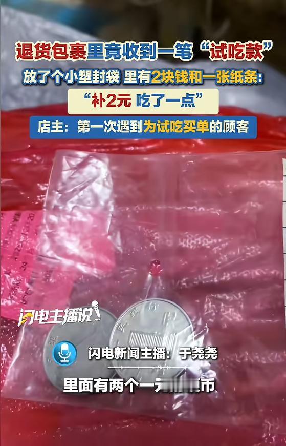 “太暖了!”近日,安徽阜阳,一男子在顾客寄来的退货包裹里,发现一个小塑料袋,里面有一张纸条和2元钱,是顾客试吃少量粉条后留下的补偿,这让男子很感动,想着自己开网店一年多,还是第一次遇到这么友善的顾客。网友:都是善良的人! 安徽阜阳的冬日午后,仓库里的光线总比外面暗得早透着几分冷清,开网店的奶爸守在堆着货物的仓库里,耳边偶尔响起撕拉胶带的声响,这声音对他来说,多半是心跳加速的前奏,毕竟在失业潮里转身入行,摸爬滚打一年多,他早已练出了本能的防御姿态。 做电商这行退货是常事,但对他而言每一次后台跳出“退货申请”,脑子里都会下意识预演各种博弈场面:会不会是包装被撕烂了?商品有没有被调包?又或者是遇到了钻规则漏洞,吃了用了就申请“仅退款”的人?一年多里他见多了电商江湖的复杂,也慢慢习惯了带着警惕应对各种突发状况。 1月27日这天,又一个退货包裹送了过来,他像往常一样拿着美工刀划开纸箱,心里做好了迎接一地鸡毛的准备,可拆开后却有些意外,里面的红薯粉条摆放得整整齐齐,没有丝毫破损凌乱,在一片灰褐色的粉条中间,一抹金属反光格外显眼,瞬间吸引了他的目光。 那是一个不起眼的自封袋,安安静静地躺在粉条中间,里面装着两枚一元硬币,还有一张折叠得随意的纸条,他轻轻展开纸条,上面只有寥寥几个字,字迹不算工整,却透着一股真诚:“补2元,吃了一点。” 就在看清字迹的那一刻,站在杂乱仓库里的他,感觉心里某块因常年防备而变得坚硬的地方,突然软了下来,眼眶也莫名一热,太暖了! 这2元钱在如今的日子里真不算什么,甚至不够一次打包用的胶带钱,可此刻握在手里,却觉得格外沉重,他愣了好一会儿,才慢慢缓过神,满心都是突如其来的感动,开网店这一年多,他见识过太多让人糟心的事,早已把“警惕”刻进了骨子里。 他遇到过有人把衣服穿去参加完婚礼,再以“不合适”为由退回来的,也碰到过收到货后,反手就举报勒索的“职业打假人”,更多的是毫无理由就退货,甚至带着恶意“薅羊毛”的顾客。 在流量至上的算法里,他只是个微不足道的小商家,习惯了被规则挤压,也习惯了在各种不讲理的索赔面前忍气吞声,渐渐筑起了高高的心理围墙。 可这个装着红薯粉条的退货包裹,却轻轻打破了这道围墙,他实在不敢相信这份突如其来的善意,立刻冲回电脑前,调出了这位安徽老乡的后台记录。 屏幕上干干净净的没有一句聊天记录,没有退货前的讨价还价,没有强词夺理的辩解,甚至连一句寻求谅解的客套话都没有,全程都是静音操作。 他瞬间懂了对方的心思,觉得粉条不合适,就行使自己的退货权,这是规则赋予的权利,但因为自己试吃了一点,消耗了商品就主动补上补偿,这是规则之外的自觉,这种简单又真诚的契约精神,在满是算计的生意场里,显得格外珍贵,也格外动人。 这位顾客显然只是单纯地不想占这一点小便宜,不想给素未谋面的店主增加哪怕2元钱的负担,在没有人监督的地方,独自完成了一次道德的闭环,奶爸坦言自己是真的破防了,让他感动的从来不是那2元钱的面值,而是那种久违的、被当作一个有尊严的人来对待的感觉。 在这个买卖双方常常剑拔弩张的环境里,这两枚小小的硬币,就像一个温柔的休止符,驱散了他心里积攒已久的疲惫和委屈,这事被他分享到网上后,网友们也纷纷留言感慨:“都是善良的人啊!”“这份自觉太难得,双向的善意最动人。” 其实规则只能约束底线,真正衡量人心的,从来都是规则之外的自觉,有人借着规则肆意挥霍善意,也有人在无人知晓的角落里,小心翼翼地守护着公平与真诚。 对这位奶爸来说,这两枚硬币带来的不仅是2元钱的补偿,更是一份关于信任的年度治愈,哪怕生意再难做,只要这样善良的人还在,就值得再坚持下去,因为这人间的温暖,从来都不会缺席。 (信息来源:《:顾客试吃后,往退货包裹里塞了2块钱和一张纸条:"补2元,吃了点”。》闪电新闻)