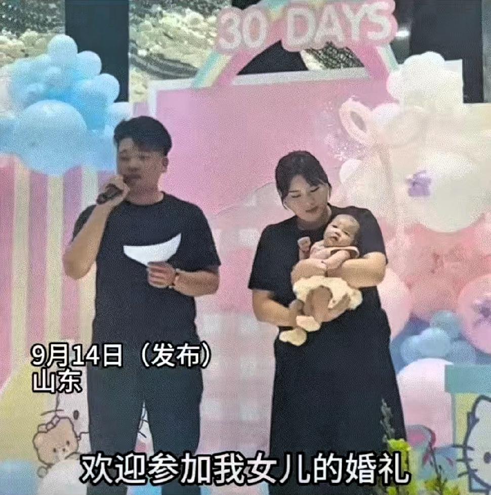 笑不活了!山东一位新手爸爸给刚满月的女儿办酒,亲戚朋友坐满宴会厅,他和妻子抱着娃上台致谢,拿起话筒一紧张,嘴一滑把“满月酒”说成了“女儿的婚礼”,台上那两秒的僵住,成了这场家宴的小插曲。 酒店门口挂着红布,左边摆着果盘,右边放着喜糖,亲戚们提着礼袋进进出出,寒暄声不断。主持人邀请一家三口上台,新手爸爸手心冒汗,上台阶时鞋跟还磕了一下。站稳后他心里直发慌,脑子和嘴没跟上节奏,这句口误就冒了出来。 台下先是安静了两秒,随后有人忍不住笑出了声,接着笑声慢慢传开,有人边笑边摆手,气氛一下子轻松了不少。妻子用胳膊肘碰了他一下,他的脸唰地红了,低头缓了缓神,赶紧把感谢的话说完整,台下响起了掌声,还有几位亲戚举着手机记录下这一幕。 这段视频被亲戚发到网上后,慢慢有了热度。有街坊认出视频里的酒店,还有人留言说当时就在现场,笑得差点呛到。后来长辈抱着孩子,挨桌敬了一圈果汁,大家边喝边聊起这个小插曲,场子更热闹了。这位爸爸下台时还摸了摸脸,脚步稍快,怕自己再说出不妥的话。 网友们的评论很有意思,有人打趣说这爸爸当爹还没适应,就先想到了当岳父;也有人说,不过是新手父母的紧张,没必要过度调侃。 在我看来,这算不上什么尴尬事,反而是初为人父的真实写照。新手爸妈的慌张与笨拙,都藏在这句无心的口误里,等女儿长大,这段视频会是全家人珍贵的回忆。