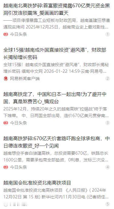 越南这回可是摊上大事了!本来想挺直腰杆,甩开中国单干高铁,结果呢?被美日德联手“放了鸽子”,670亿美元的大项目直接烂尾。这哪是搞战略基建啊,简直就是把自己往火坑里推,这回看他们怎么收场? 麻烦看官老爷们右上角点击一下“关注”,既方便您进行讨论和分享,又能给您带来不一样的参与感,感谢您的支持! 越南这个人均 GDP 刚过 4000 美元的东南亚国家,愣是把一个高铁项目玩成了押上国运的豪赌。越南官方将这条贯穿南北、设计时速 350 公里的高铁包装成 “世纪工程”,全长 1541 公里途经 20 个省市,总投资敲定 670 亿美元,一心想靠这个项目撑起国家基建的排面。 在这个项目上,越南的小算盘打得噼啪响,核心就是追求所谓的 “战略独立”,想着尽可能降低对中国的依赖。明眼人都知道,中国高铁技术成熟,海外工程经验丰富,还能把成本控制在合理范围,给越南的方案也是实打实的一体化配套。 但越南偏不,一门心思要引入美日德的力量打造这个世界级工程,觉得这样才能在大国博弈里站得更稳。他们甚至刻意把中企排除在外,哪怕中国铁建曾主动登门洽谈合作,也没能改变越南的地缘政治考量,愣是把经济账让道给了政治账。 可越南忘了自己几斤几两,本土连完整的高铁工业体系都没有,别说造核心设备,就连基本的高铁施工技术和专业人才都缺口巨大,工程师数量还不到中国同类项目的二十分之一。这个项目从钢轨到信号系统,几乎全要靠外部进口,对国外技术和装备的依赖达到了百分之百。 越南本以为美日德会捧着资金和技术来合作,可现实给了它狠狠一巴掌。这些国家的企业也就前期凑个热闹,表达下参与兴趣,真到了谈融资结构、政府兜底这些核心问题时,一个个都开始往后缩。 美国曾有投资联盟宣称要注资千亿美元,最后直接失联注销地址;德国西门子只愿做技术合作,压根不碰投资;日本早年间的新干线方案也因越南扛不住成本不了了之。没有一家企业愿意主导投资,都只想赚技术钱,不想担项目风险。 无奈之下,越南只能把项目交给本土企业牵头,一边是房地产起家的 Vingroup,一边是做汽车组装的长海集团,两家都没碰过高铁建设,硬着头皮接下了这个烫手山芋。越南首富掌舵的 Vingroup 还曾和西门子签了合作协议,结果 8 天后就紧急撤资,首富单日身家蒸发近 20 亿美元。 撤资的背后全是实打实的经济账,按照测算这个项目年均收入仅 56 亿美元,光运营成本就高达 42 亿美元,再叠加 670 亿美元本金的利息,妥妥的越运营越亏。而且项目单位造价比中国京沪高铁还高一倍多,关税和汇率波动还让成本随时有失控的可能。 更要命的是越南的财政底子根本撑不起这个项目,2024 年越南全国财政收入也就七百多亿美元,一个高铁项目的投资就逼近全年财政收入。越南公共债务率虽维持在合理区间,但财政收入高度依赖制造业出口,全球经济环境一波动就跟着承压,根本没能力为项目兜底。 那些本土企业接下项目后,也只想把风险甩给政府,要么要求全额贷款担保,要么要三十年的利息补贴,这样的条件让越南央行直接警告,直言项目会引发系统性金融风险,甚至可能触发主权信用评级下调。 越南的高铁梦还栽在了现实条件上,越南地形狭长,安南山脉横亘中间,高铁建设要逢山开路遇水架桥,桥梁隧道占比超七成,还要穿越喀斯特地貌和地质断裂带,可越南本土企业连高铁级别的长隧道都没挖过。 而且越南的电网本就脆弱,极度依赖水电还常闹电荒,高铁这个 “电老虎” 的瞬时功率高达八千多千瓦,现有电网根本扛不住,强行接入可能直接拉爆区域电网。越南现有铁路还是老旧的米轨,和新建高铁的标准轨无法互通,货物换乘还要反复装卸,物流优势全没了。 就算项目能勉强建成,也逃不过没人坐的尴尬。越南廉价航空高度发达,南北航线日均八十多班,两小时就能到,票价最低才三百元人民币。而高铁要走五个多小时,票价还得七百多,对于月均工资三百美元的越南普通人来说,这就是坐不起的 “贵族车”。 如今这个 670 亿美元的高铁项目彻底陷入烂尾,前期征地还引发了民众抗议,部分地区的耕地被征后闲置,农业也遭受了损失。Vingroup 撤资还引发了越南股市震荡,相关股票全线跌停,市值单日蒸发超 50 亿美元,一系列连锁反应让越南苦不堪言。 说到底,越南的高铁烂尾就是一次彻头彻尾的战略误判,高估了自己在大国博弈里的议价能力,总想着靠平衡各方关系来占便宜,却低估了基础设施项目的经济本质。基建从来不是靠政治考量就能推进的,终究要遵循经济规律,光有宏大的愿景,没有匹配的实力和务实的态度,最后只能是竹篮打水一场空。