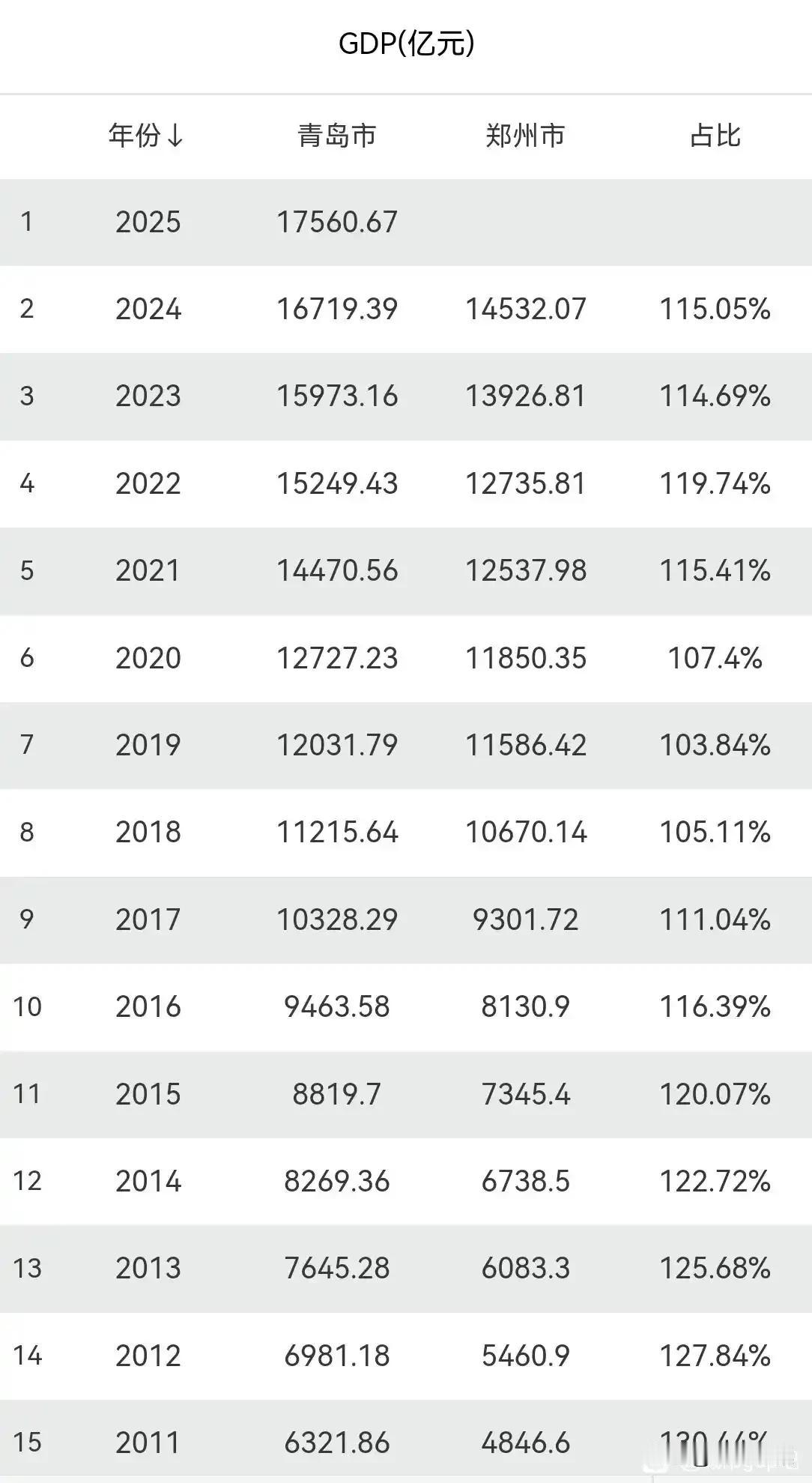 郑州和青岛,谁才是北方经济第三城?看看郑州和青岛最近十几年的对比就清楚了。在郑州巅峰时期的2019年,郑州一度有赶超青岛的架势,那是两城差距最小的时候。 可惜,郑州没有保持住上升态势。目前来看,青岛的后劲和优势明显更大些,而郑州好像把“强省会”的力气用尽了。郑州GDP 青岛排行榜 青岛经济 青岛gdp增速 郑州