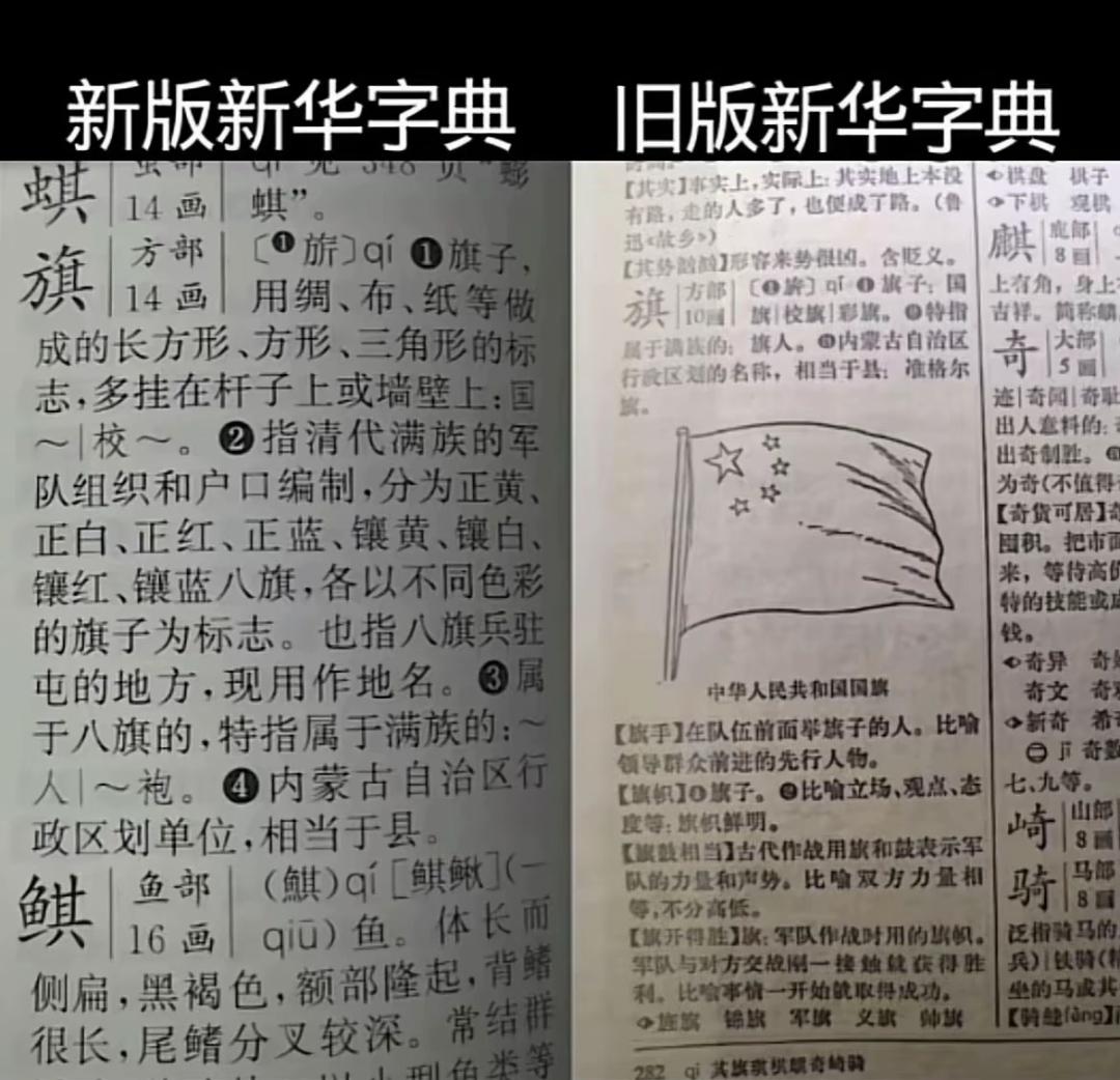 不同版本字典对于“旗”字这一词的解释! 旧版的字典十分明确,第一眼就想到了国旗,阐明了相关联的意思。 新版的字典却有另一层意味,在第2词着重解释了八旗的意思,不知道角度是从哪里出发的,现在基本上不会用八旗二字。 各位是怎么看的?欢迎评论区留言。