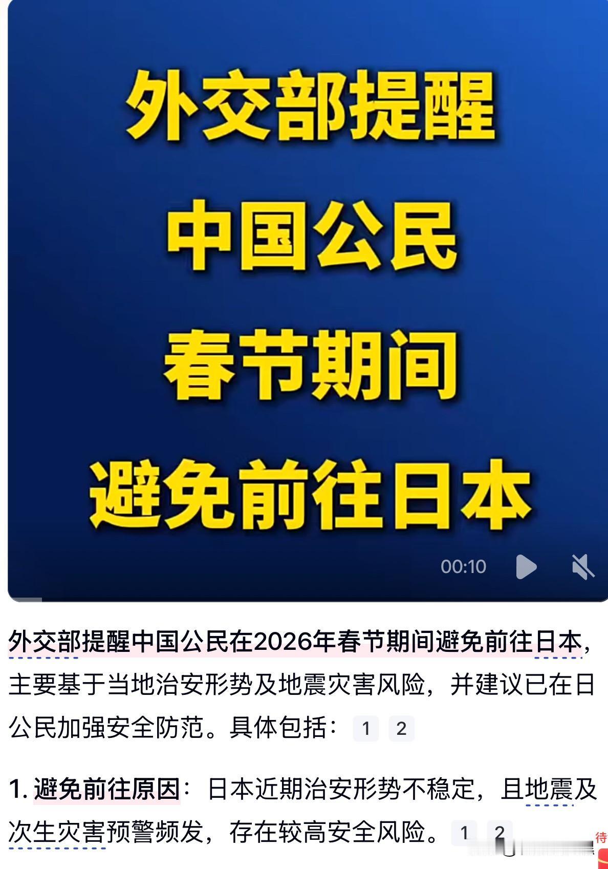无论你怎么苦口婆心,也挡不住他们的任性 我打任性的时候,首先出现的是“人性”,说明任性这玩意儿确实是由“人性”决定的。 自从小日子的首相高市早苗将中日关系推到一个历史最危险的境地之始,中国政府就不止一次的发出了警告,但有些任性的国人始终置若罔闻,前仆后继的奔向他们心中向往之地,可能在他们心中最遗憾的就是为什么去了还要回来! 希望国家对这些顶风逆行的人记录在案,一旦中日发生不可逆转之时,此类人一定严加监控,谨防出现九十年前藏匿山顶沟壑之中举镜引路之徒! ————————————