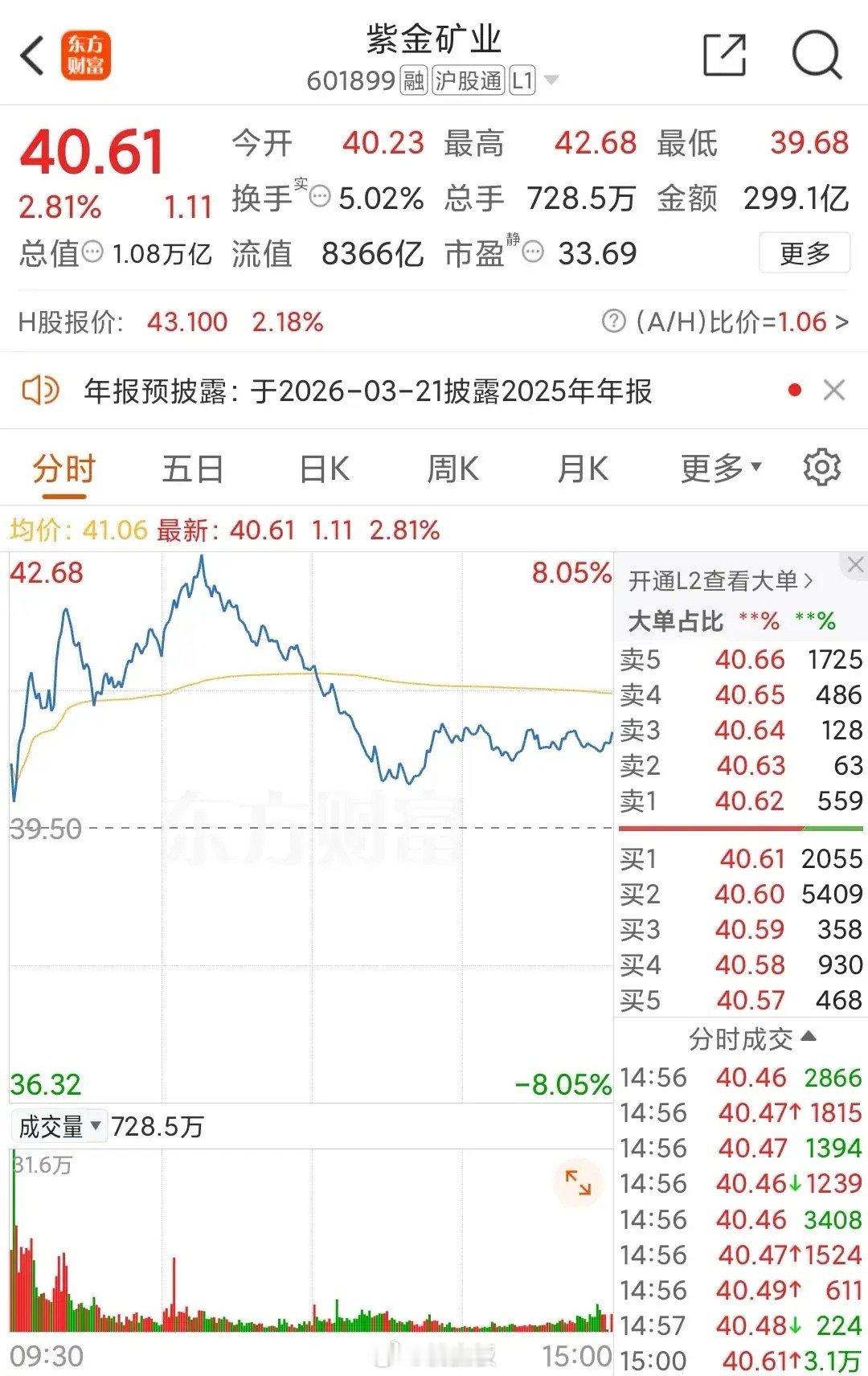真是炸裂!今天大A成交量第一的股票,全天成交金额达299亿。这家公司告诉你:我不是来炒股,我是来开“印钞厂”的!今天大A最大的“吞金兽”,不是某个涨停小妖,而是这位 市值一万亿的巨无霸——紫金矿业。它让你知道,什么叫“真正的流动性黑洞”。这笔钱,够买下很多A股公司,今天却只是在它的K线图里,流进流出了一遍。299亿是什么概念?约等于每分钟成交 1.66亿。这不是交易,是“资金海啸”。万亿市值的公司,玩出了8%的振幅,说明在趋势和预期面前,体量再大也得“随波逐流”。5%的换手率说明散户参与度低,这是“国家队”、“外资队”、“机构队”的三方桌游,广大散户只是观众。这巨无霸,天量成交背后的市场信号,是 “周期之争”?是“风格切换”?还是 “全球定价权”的博弈?对此,你怎么看。你觉得这299亿资金,是进场抄底,还是拉高出货?如此之高的成交金额,刚好是:市值万亿不寻常,一日成交三百亿。振幅八点像小船,换手五成藏巨力。若问资金何处来?机构博弈拼预期。周期之辩未分明,且看铜金指方向。