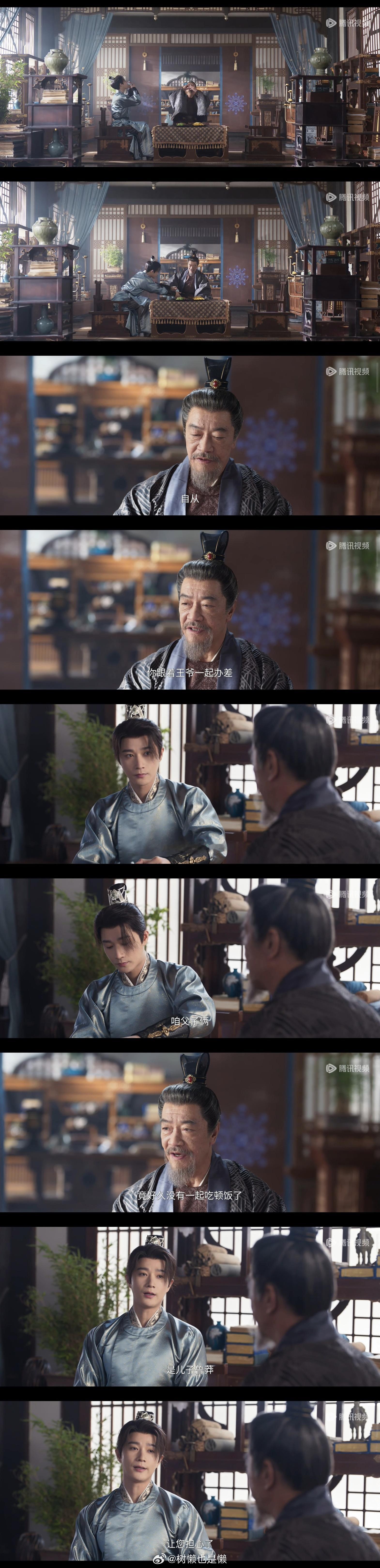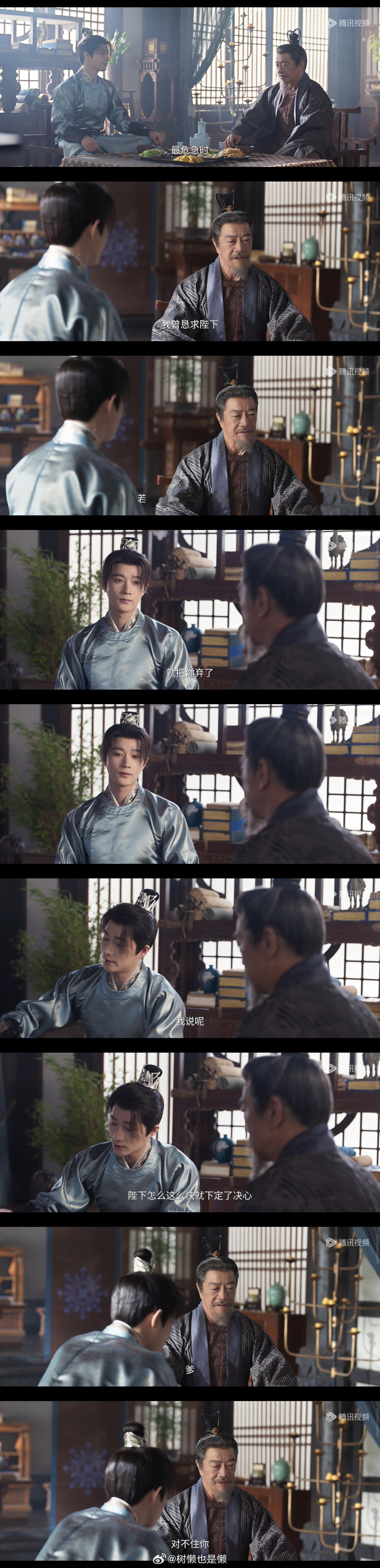 1️⃣特别喜欢景家父子这段对话!!🦊第二部很难得能看到主角团跟长辈们的戏了,第一部的几个长辈基本上都没出现过,最多只存在于台词里……这部虽说景阁老换演员了,但好歹戏里跟儿子有互动景翊在父亲面前的调皮小表情真的很可爱哈哈哈哈还是熟悉的味道,总能缓解沉重氛围如果能再靠一次他爹的肩膀就更好了🥺“要不说咱俩是父子呢,心有灵犀呀,您为了大唐鞠躬尽瘁,死而后已的,我也得有样学样,不能做个孬种吧”“用我一条命换大唐喘息的机会,划算得很”“我就是后悔啊没提前告诉您,让您把我在家谱上记个大功”【这段真的很有纨绔的味道哈哈哈哈】“仰不愧于天,俯不怍于人。”“我儿长大了”2️⃣“恭迎王爷回家”这句话好像霸总文学啊🤣(不是我们月景虽然是背景板但也有可爱的小互动!3️⃣“一两句说不清楚”和“舌头拌饭”终于call back了哈哈哈哈小锦鲤果然在爱情方面还是说不太清楚(4️⃣可惜交州月景不在啊啊啊啊真的很想看五人组!!戏份也太少了还以为进入主线就能聚一起,结果。。真是受够南赵人了