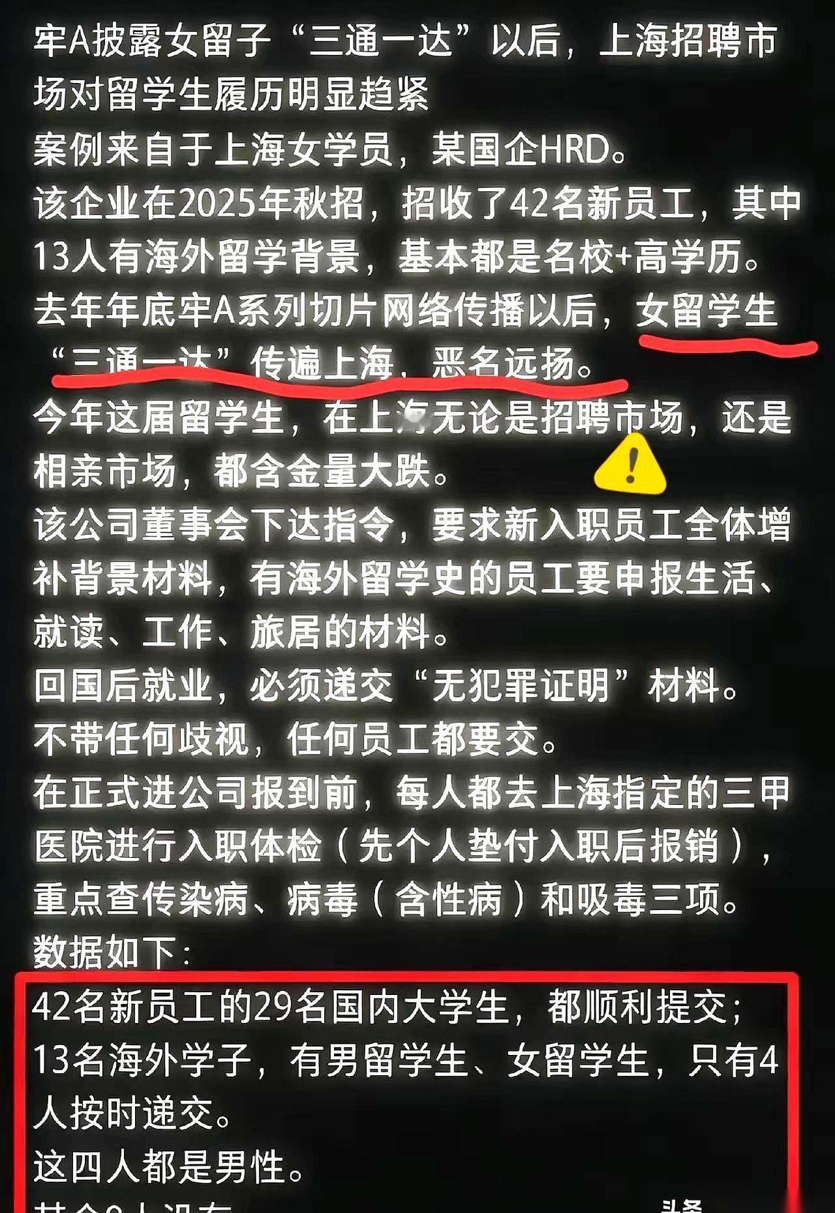 留学生这个词,以前一拿出来,饭桌上长辈的筷子都得慢半拍,眼里全是光。 直到网上那波爆料,像一盆冰水,直接从头浇下来。所谓的光环“滤镜”,一夜之间碎得找不着一块完整的。 我听一个做HR的朋友说,他们现在收到这类简历,第一反应不是看学校,而是几个人凑到一起,小声嘀咕要不要加个体检。简历就那么静静地躺在桌角,没人先伸手去碰。 不光是找工作。 前阵子还热心给侄女介绍对象的王阿姨,电话里声音都变了,支支吾吾半天,最后撂下一句:“那个……还是算了吧,咱找个知根知底的。”电话那头,是她刚刚还在朋友圈夸耀的“青年才俊”的资料,被默默地划掉了。 以前是加分项,现在成了风险项。