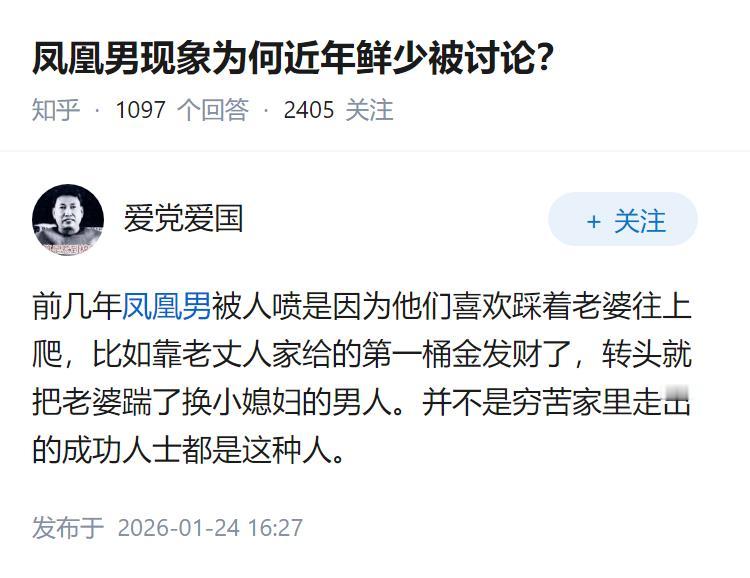 凤凰男现象为何近年鲜少被讨论? 早些年很多人都在讨论嫁人是否嫁凤凰男,跟城市的男