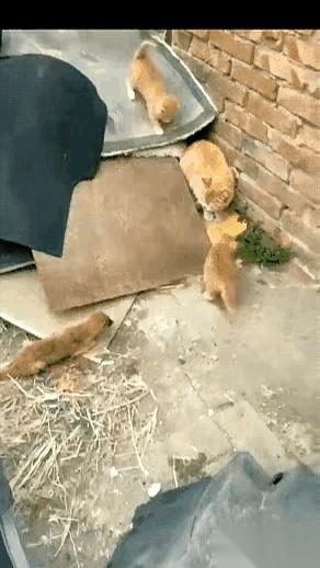 院子里窜进来一只黄鼠狼,贼眉鼠眼地贴着墙根溜达。旁边,一只猫妈正带着几只小猫晒太阳。 其中一只胆子最大的猫崽,好奇心上头,迈着小碎步就凑了上去,想闻闻这个新来的家伙。 黄鼠狼猛地一扭头,张嘴就咬! 那一下又快又狠,小猫崽脑袋一缩,险险躲开,连滚带爬地退了回来。旁边另一只小猫看到这一幕,嗖一下就钻到了猫妈肚子底下。 但猫妈没动。 一寸都没动。整个身体瞬间僵住,肌肉绷成一块铁,尾巴尖都不再摇晃一下,一双眼睛死死锁住黄鼠狼,像两颗钉子。 她就这么等着,等两只受惊的小猫都挪到了安全地方。黄鼠狼大概以为自己占了上风,大摇大摆地想从猫妈身边溜过去。 就是现在。 前一秒还静如雕像的母猫,后一秒直接弹射出去,身体在半空拉成一道残影,一只爪子抡圆了,带着风声,结结实实地抽在了黄鼠狼的脑门上。 一声闷响。 黄鼠狼直接被打翻在地,四脚朝天蹬了两下,才狼狈地爬起来。刚才那股嚣张劲儿瞬间清零,它一溜烟地窜到墙角,缩成一团,再也不敢抬头。 那一巴掌,算是给这个院子立下了新规矩。