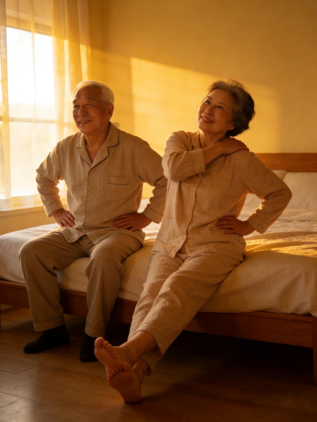 中老年朋友晨起别一醒就急匆匆坐起下床,咱们身体从躺到站,得像汽车热车一样有平缓过渡,晨起这三分钟做好,一整天都轻松。 教大家一个简单的被窝养生法,三步就能完成: 第1步:伸一伸(1分钟):醒后不睁眼,深吸一口气,脚后跟前蹬、手臂上伸,缓慢拉伸僵硬的胳膊腿,来回两三遍,让身体微微发热。 第2步:揉一揉(1分钟):双手搓热,先敷眼,再顺着鼻梁、脸颊干搓几遍,最后用手指当梳子从额前向后梳头,活络面部气血,唤醒双眼。 第3步:转一转(1分钟):慢慢坐至床边,脖子左右各慢转三圈,肩膀前后轻柔耸动,脚踝顺时针、逆时针各转十来圈,活动全身关节。 别小看这三分钟,好处特别实在:既能让血压、心跳从休息状态平缓过渡,避免猛起床引发的头晕、心慌,又能唤醒全身关节,让一天活动更利索;还能让晨起更从容,给新的一天开个好头。 一日之计在于晨,晨起之计在于“慢”,不妨从明天开始试试,三分钟的小投入,换一整天的轻松精神。