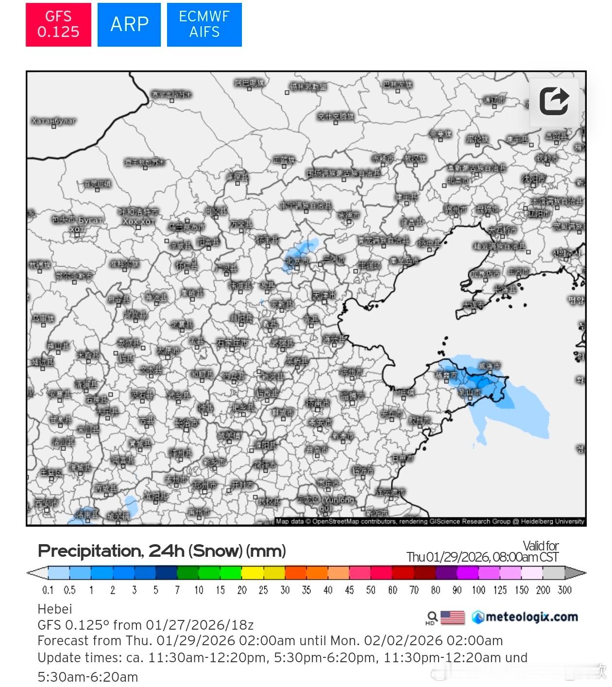 【降水】昨天到今晨,南方降雨收缩,主要在浙江福建出现相对明显的小雨。西藏西南部因为高空槽影响出现降雪,普兰出现大雪。从云图看,高原西侧依然可见大范围的高空槽云系。今天到明晨,青藏高原有大范围降雪,西藏南部沿山一带有大雪-暴雪,局地大暴雪。此外贵州重庆四川一带,在今夜到明天也会发展增多。而京津冀一带,今晚到明晨,存在回流降雪可能。但目前数值预报依然有分歧。图4-6为欧洲报,欧洲AI模式,美国报。欧洲报的降雪主要是天津中南部和河北沧州下属区域。欧洲AI模式报的降雪范围最大,京津冀多地有雪。美国模式只报了北京沿山附近的门头沟石景山海淀昌平一带。图7-9为28日晚-29日凌晨的近地面流场预报。京津冀应该都有机会但都不保证有。