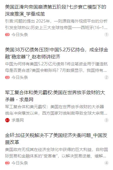美国真正慌的不是某一场竞争,而是整套吸血体系开始失灵:当中国不再按既定路线当血包,美国的斩杀线被迫浮出水面,暴露的不是强大,而是退路消失后的焦虑 麻烦看官老爷们右上角点击一下“关注”,既方便您进行讨论和分享,又能给您带来不一样的参与感,感谢您的支持! 过去几十年里,美国能稳坐全球体系的上游位置,靠的从来不是扎实的制造业根基或是完善的基建体系,而是一套环环相扣的全球吸血体系。美元占据全球贸易结算的主导地位,美军掌控着全球关键的海运航道,美企攥着各领域的核心技术,华尔街则凭借成熟的金融体系吸纳全球资本,这四大支柱让美国轻松实现所谓的 “永远赢”。 中国加入世界贸易体系后,曾在这套体系里按既有规则运作。彼时我们主要输出低附加值的制造业产品,靠着实打实的生产和出口积累美元顺差,为了让外汇储备实现稳定增值,又将大量美元用于购买美国国债,实打实给美国的发展输送了红利,也成了其体系里重要的外部供血方。 那段时间里,美国靠着这样的模式坐享其成,一边低价购入中国生产的各类商品,让国内通胀长期保持低位,民众维持着高生活水平;一边靠着他国购买美债完成美元回流,支撑起国内的金融运转和发展。2000 到 2019 年美国年均通胀率仅 2.1%,这份平稳背后,离不开中国商品的持续输入。 但中国从未想过一直停留在产业链的低端,而是主动打破了美国为世界各国预设的发展路线,开启了从 “中国制造” 向 “中国创造” 的转型之路。我们不再满足于做低附加值的加工生产,而是把精力放在了技术研发和产业升级上,在 5G、人工智能、新能源等关键领域持续发力。 如今中国在这些领域已经形成了系统性的竞争力,新能源汽车的产销量全球领先,5G 技术实现了全球布局,人工智能的研发和应用也走在世界前列。这样的转型直接戳中了美国吸血体系的要害,原本靠技术垄断、产业分工实现的吸血通道,被中国的技术突破和全产业链能力一步步堵塞。 美国显然意识到了危机,它想要在中方补齐所有发展短板前完成压制,于是撕下了所谓的自由贸易面具,接连祭出各种围堵手段。科技禁令层层加码,芯片领域的断供不断升级,对华加征关税发起贸易战,还动辄以金融制裁相威胁,这些手段的密集出台,让美国的所谓斩杀线彻底浮出水面。 这一系列操作,看似是美国依旧强大的表现,实则暴露的是它退路消失后的深层焦虑。美国心里清楚,中国的产业升级和技术突破,正在从根本上动摇其吸血体系的基础,一旦失去对核心技术和产业链的掌控,它再也无法轻松从全球攫取利益。 而美国的焦虑,更源于自身早已积重难返的结构性问题。常被提及的制造业空心化并非完全的产业消失,而是产业生态的严重失衡,1950 年代制造业占美国 GDP 的 28%,2024 年这一比例仅约 10.5%,中低端制造外移导致供应链脆弱,高端制造也面临技术工人断层的问题。 债务问题更是美国的致命软肋,如今美债规模已突破 38 万亿美元,2024 财年美国财政收入的 22% 都要用于支付债务利息,78% 的新增债务更是只用于付息和社保医保这类非生产性支出,借新还旧成了维持运转的唯一选择,而曾经的主要债权国还在持续减持美债。 社会层面的撕裂也让美国内部矛盾重重,政治极化导致国会立法效率创历史新低,政府停摆成了常态,财富分配的差距越拉越大,前 1% 的家庭持有全国 32% 的财富,而底层 50% 的家庭仅持有 2.6%,阶级固化的现状让国内的社会矛盾不断积累。 失去了中国持续的外部输血后,美国的这些内部矛盾被进一步放大,经济发展的动力越发不足。而美国对中国发起的各类围堵,其实只能在短期拖慢中国的发展脚步,根本无法阻挡中国产业升级和技术突破的大趋势,更不可能修复自身的结构性衰退。 中国的发展模式,更让美国的吸血体系失去了合法性。我们不靠霸权、不靠掠夺,而是靠着自身的努力实现产业升级,靠着互利共赢的合作开展国际贸易,这样的发展路径,让越来越多的国家看到了新的可能,也开始主动摆脱对美元体系的依赖。 各国纷纷开始调整外汇储备结构,增持黄金减持美债,推动本币结算的国际贸易,美元的霸权地位正在松动,美军的耀武扬威也不再能让所有国家屈服。美国的吸血体系,在时代的发展和中国的突破下,正一步步走向失灵。 美国如今的种种举动,本质上都是在为即将逝去的霸权做最后的挣扎。它慌的从来不是和中国在某一个领域的竞争输赢,而是整套吸血体系的崩塌,是再也无法轻松从全球攫取利益的未来,是退路消失后,面对自身结构性问题却无力解决的深层恐慌。而历史的车轮终究向前,靠霸权和吸血维持的地位,注定无法长久,唯有脚踏实地的发展和互利共赢的合作,才是世界发展的主流。