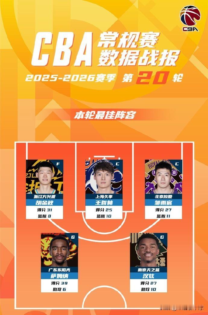 CBA第二十轮最佳阵容出炉:萨姆纳&奎因入选! 1月28日CBA官方公布了常规赛第20轮最佳阵容,胡金秋、王哲林、邹雨宸、萨姆纳、汉兹入选。其中。萨姆纳在迎战天津男篮一役中仅出场24分钟19中15高效砍下39分。并且成功入选本轮最佳阵容!而广东男篮另一外援—奎因则是继续霸榜抢断榜,广东东阳光球员奎因以单场6次抢断的数据领衔抢断榜;本赛季至今,奎因以场均2.8次抢断成为联赛抢断王!广东宏远 广东男篮
