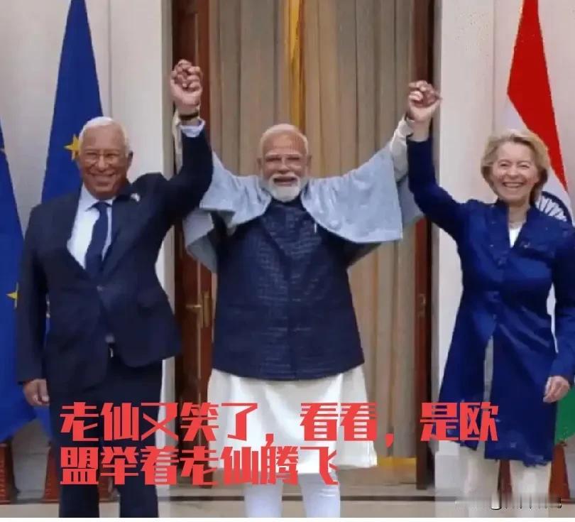 不要再小看印度了,要警惕印度在中欧合作中搞破坏。2026印度这是要腾飞的节奏,开年大阅兵,不管阅啥,搞的很红火。这不是重点,重点是欧盟的参加,而且是欧能主要领导人全部参加,让印度进入高光时刻。笑容满面的莫迪,拉着科斯塔,冯德莱恩,举起手的时候,印度的前途似乎一片光明。 印度2025被巴巴羊打了六闷棍,又被特朗普各种羞辱,老仙是一年闷闷不乐。为了博个好彩头,一开年,老仙就和欧盟搞到一起,想替代中国,成为欧盟的制造基地。虽然我们和欧盟的合作印度不可能替代,但是以印度搅屎棍的做派,印度做不成,也要搅的你做不成,所以不得不防。