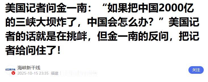 美国记者问金一南:“如果把中国2000亿的三峡大坝炸了,中国会怎么办?”金一南听完叹了口气说:“你知道南斯拉夫之痛吗?”美国记者的话就是在挑衅,但金一南一个聪明的反问,把记者给问住了。 三峡大坝是中国人用了几十年时间规划、十几年时间建成的超级工程。 它不是普通的大坝,它是世界上最大的水利枢纽,是全球最大的水电站,也是中国几代工程师智慧和汗水的结晶。 大坝背后,是亿万人口的安全,是国家能源的命脉,是长江流域的防洪屏障,是航运、农业、工业全方位的保障。 这样一座工程,当然是中国的心脏。 所以,当有外国人拿它开玩笑,甚至在公开场合拿它当威胁工具的时候,中国人当然不能沉默。 金一南面对的是一个西方记者,问题一出口,整个场合的空气都紧绷起来。 炸毁三峡大坝代表的不是一个工程的毁灭,而是对一个国家的全面挑衅。 金一南没有正面回答,而是轻轻说了句南斯拉夫之痛。 他没有多说,但在场的人都听懂了。 那是1999年,美国带着北约,未经联合国授权,直接对南斯拉夫动手。 说是打击军事目标,结果炸了医院、学校、广播站、桥梁,连中国驻南联盟大使馆也没放过。 5月8日凌晨,北约的B-2轰炸机从意大利起飞,投下了五枚精准制导炸弹,正中中国大使馆。 那一晚,贝尔格莱德的夜空被炸弹撕裂,三位中国记者当场牺牲,几十人受伤,馆舍变成废墟。 美国的解释是地图太老、情报失误。 可谁都知道,这不是一个地图的问题,而是一个态度的问题。 他们想用武力告诉世界谁说了算,也想顺便敲打中国。 那一夜,中国人看清了一个现实,没有强大的国防,别人的炸弹就能落在你头上。 那一天,中国举国震怒,街头成千上万的人自发走上街头,愤怒、悲伤、愤慨,全都写在脸上。 战略核潜艇、东风导弹、航母、五代机、国产大飞机、北斗导航、超级计算机、C919……一个个项目接连上马。 中国不再只盯着经济发展,也要把国防提到同样重要的位置。 金一南在后来写的书《为什么是中国》里也提到,那次事件让很多人醒了。 不是别人愿不愿意欺负我们,是我们有没有能力让他们不敢动手。 正是有了这些年的投入,中国才有了今天的底气。 2018年,南海对峙事件中,中国军舰选择了对撞,而不是后退。 美军最后选择了避让。 这背后不是一次军舰操作的胜利,而是整个战略体系的支撑。 三峡大坝是中国的命根子,也是中国的底气象征。 谁敢动一下,就不是一场灾难那么简单,那是国家意志的碰撞。 金一南没有情绪激动,只是用一句历史提醒,把话说到了点子上。 那场记者会之后,美国人再也没敢轻易拿三峡说事。 中国不欺负别人,但也绝不会再被人欺负。 历史的教训已经够多,现在是该让别人学着尊重中国了。 和平不是别人给的,是靠自己争来的。 安全不是靠幻想来的,是靠实力撑起来的。 金一南说得很清楚,如果我们只会微笑,不会瞪眼,钱包也会被抢走。 现在的中国,能瞪眼,也有东西撑腰。 就像那十五个字说的,国家有力量,民族有希望,人民有信仰。 中国人该有信心,也该有担当。 信息来源:美国记者问金一南:“如果把中国2000亿的三峡大坝炸了,中国会怎么办?”——海峡新干线