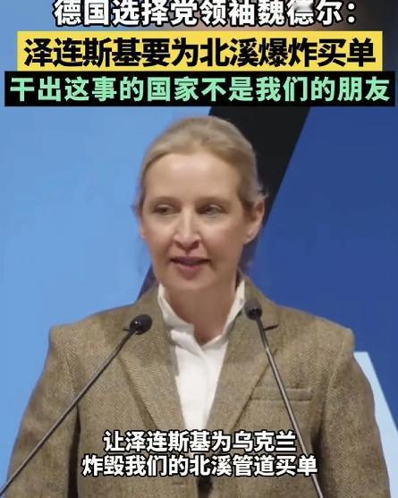 1月26日,德国选择党领袖爱丽丝·魏德尔称,“我可以明确告诉大家,待我们执掌政权后会采取的行动——我们将提出索赔要求,就让乌克兰人、就让泽连斯基,为他们炸掉我们的输气管道付出代价。事情就是这么简单。一个做出这种行径的国家,绝不是我们的朋友”。 2026年1月26日,德国选择党领袖爱丽丝·魏德尔的一句表态,直接把欧洲政坛搅成了一锅粥。 她对着公众放话,只要选择党能执掌政权,第一件事就是找乌克兰和泽连斯基算账,不仅要追回之前给乌克兰的援助资金,还得让对方赔偿北溪管道爆炸的损失,语气决绝:“做出这种行径的国家,绝不是我们的朋友”。 这话一出口,有人拍手叫好,也有人直言,这不过是场精准蹭热点的选举戏码。 魏德尔的话能快速引爆舆论,根本原因是戳中了德国民众的痛处。 自2022年9月26日北溪管道爆炸后,德国人就没过上过安稳日子——三条管道同步泄漏,直接断了德国依赖数十年的俄罗斯廉价天然气。 对靠制造业立足的德国来说,能源断供就是致命打击,天然气价格短期内暴涨340%,工业产出下滑8%,大批中小企业扛不住压力纷纷倒闭。 普通老百姓的日子更是雪上加霜。 德国西部鲁尔工业区的一位乳制品厂老板,光是工厂取暖和生产的能耗成本就翻了近四倍,无奈之下只能裁掉工人、缩减生产线。 退休老人为了省电费,寒冬里每天只敢开两小时暖气;工薪族被飙升的房租、物价压得喘不过气。 这种积压已久的不满,成了魏德尔言论最坚实的“群众基础”。 为了把情绪拉满,魏德尔还抛出了850亿欧元的索赔清单,声称其中700亿是援乌资金,150亿是管道赔偿。 可这份清单根本经不起细查,德国联邦政府的官方数据显示,自2022年以来,德国对乌援助总额实际只有440亿欧元左右。 所谓的700亿,不过是她把欧盟分摊的份额、军事装备折算价,再加上能源危机的隐性成本强行叠加,目的就是夸大损失、挑动民众不满。 魏德尔敢这么硬气,还借着了北溪爆炸案的调查“东风”。 在她发声前10天,德国联邦最高法院驳回了核心嫌疑人谢尔盖的申诉,明确否定了“业余团伙作案”的说法,认定这是外国情报机构操控的暴力行为。 可这份裁定不仅没厘清真相,反而让局面更混乱。 调查显示,实施破坏的是一个7人专业团队,有潜水员、爆炸物专家和船长,他们拿着伪造的乌克兰护照从波兰入境,租了艘帆船完成了行动。 德国警方已锁定6名乌克兰籍嫌疑人,主犯谢尔盖2025年8月在意大利被捕,11月被引渡到德国,但法院只证实嫌疑人受情报机构操控,压根没牵连泽连斯基政府,至今也没有任何官方证据能证明乌政府是幕后主使。 更有意思的是各方的态度分歧。 俄罗斯一直咬定美国才是真凶,可相关证据被西方刻意隐藏;德国政府自己也没开展彻底调查,主流媒体对调查细节讳莫如深。 这种遮遮掩掩的做法,反倒给了魏德尔借题发挥的空间,她刻意混淆历史,把当下俄乌冲突和1941年纳粹德国入侵苏联混为一谈,还抨击默茨政府默许派士兵、坦克赴俄边境,指责其罔顾二战历史。 她的这套说辞,不仅漏洞百出,还惹恼了盟友。 波兰等东欧国家对此极为反感,认为魏德尔无视东欧的安全诉求,想把东欧当成地缘缓冲垫,这直接暴露了欧洲内部在安全议题上的深层分歧,也让欧盟的团结面临考验。 抛开舆论和情绪,这份索赔主张从一开始就是空中楼阁。 德国刚和乌克兰签了十年安全保障协议,现在翻脸要债,完全违背国际交往的基本逻辑。 乌克兰深陷战事,经济和财政早就濒临崩溃,根本拿不出这么多钱赔偿。 更何况,德国主流政党早就达成共识,坚决不与选择党组阁。 即便选择党当前民调支持率达26%,东部地区更是高达40%,有望在2026年五个州的选举中拿下州长席位,也很难真正执掌政权。 魏德尔心里门儿清,她要的从不是兑现索赔承诺,而是靠情绪绑架收割选票,把自己打造成“为德国讨公道”的形象。 这种借国际事件炒作民粹情绪的套路,欧洲政坛早有先例。 2018年匈牙利欧尔班政府,就借着难民危机大肆渲染民粹言论,靠煽动民众不满成功上台,后续还因激进政策引发欧盟内部分裂,和如今选择党的操弄逻辑如出一辙。 北溪管道的真相或许会永远尘封在波罗的海海底,但这场围绕索赔的政治表演,不过是极右翼政党追逐选票的又一缩影。 如果各位看官老爷们已经选择阅读了此文,麻烦您点一下关注,既方便您进行讨论和分享,又能带来不一样的参与感,感谢各位看官老爷们的支持!