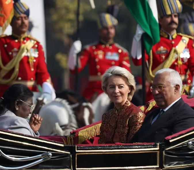 太尴尬了!欧盟主席冯德莱恩被邀请参加印度阅兵式后,反而遭到了美国多家媒体的嘲讽,认为终于被尊重的冯德莱恩明显是激动坏了。 除了在与印度总理莫迪一同检阅首次亮相的动物方队时,露出尴尬笑容被认为不尊重印度外,还被认为正在“病急乱投医”,试图在欧盟与美国关系马上分崩离析的背景下讨好印度。 当地时间1月26日,印度新德里举行盛大的共和国日庆典,冯德莱恩特意前往,还和莫迪一起检阅了阅兵方队,其中就有首次亮相的动物方队,也正是这个环节,让她陷入了争议。 当时镜头拍到,冯德莱恩看着动物方队时,脸上露出了一丝不自然的笑容,这个笑容被美国媒体死死抓住,大肆嘲讽。 美媒直言,冯德莱恩是太久没被重视,这次能被印度邀请,就激动得忘乎所以,连最基本的尊重都忘了,对着印度的传统方队随意发笑,分明是不把印度放在眼里。 美国媒体之所以这么不留情面,核心还是因为欧盟和美国的关系已经岌岌可危,双方最近闹得不可开交。 就在不久前,美国总统特朗普公开宣布,要对丹麦、挪威等8个欧洲国家加征全面关税,目的是逼迫这些国家在格陵兰岛主权问题上让步,这一举动彻底激怒了欧盟。 作为反击,欧盟直接暂停了和美国的关键矿产贸易协议审批,还计划对价值930亿欧元的美国商品加征报复性关税,双方剑拔弩张,跨大西洋联盟的裂痕越来越深。 冯德莱恩心里清楚,欧盟现在腹背受敌,一边要应对美国的关税施压,一边要缓解自身的经济和供应链困境,所以才急着找新的合作伙伴,而印度作为人口众多、市场潜力巨大的国家,就成了她的目标。 这次主动前往印度参加阅兵,甚至带着欧盟军事分队首次亮相印度阅兵式,还高呼“印度万岁”,说白了就是想讨好印度,推动印欧之间的自贸协定和防务合作,为欧盟找一条退路。 可她的这份急切,在美媒看来就是“病急乱投医”。 美媒直言,欧盟现在试图靠讨好印度来摆脱对美国的依赖,简直是异想天开。他们还泼冷水说,印度和俄罗斯的关系一直很近,欧盟和印度走太近,不仅得不到好处,反而可能会得罪俄罗斯,到时候只会雪上加霜;而且印度市场看似庞大,但人均GDP不高,欧盟的高端商品很难在印度打开销路,想要靠印度替代其他市场,根本不现实。 更尴尬的是,冯德莱恩费尽心机讨好印度,印欧之间的合作也未必能一帆风顺。虽然双方一直在推进谈判近20年的自贸协定,印度也承诺会降低欧盟汽车进口关税,但双方在钢铁、农业等领域还有很多分歧,而且这份协定还需要欧洲议会批准,能不能通过还是个未知数。 更重要的是,中欧贸易额每年接近9000亿欧元,而印欧贸易额只有1200亿欧元,两者差距悬殊,欧盟想靠印度替代中国供应链,无疑是杯水车薪。 冯德莱恩事后还在社交媒体上写道,一个成功的印度让世界更稳定、繁荣、安全,试图挽回局面,但争议并没有就此平息。 一边是美国媒体的持续嘲讽,一边是印欧合作的重重阻碍,还有欧盟内部的分歧,冯德莱恩这次的印度之行,不仅没能为欧盟找到退路,反而让自己陷入了两难的尴尬境地。