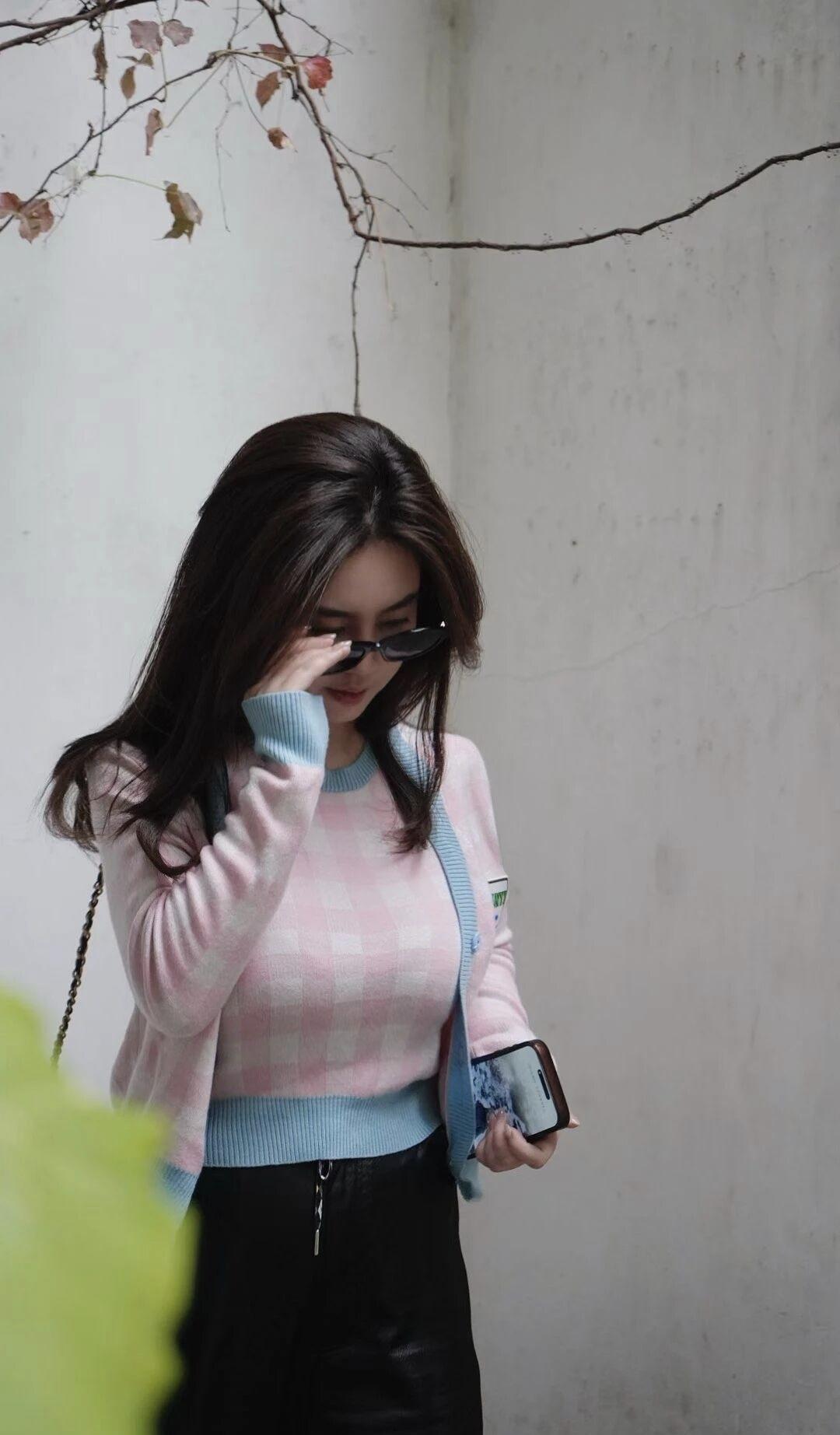 复古风穿搭,粉色毛衣+黑色裤子,时尚又保暖!🌟👗👖