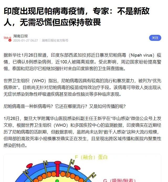 大胆的预言,2026年的黑天鹅事件,印度极有可能成为一颗“毁灭”世界的定时炸弹。 大家可能还没注意到,南亚那边的风向变了。一种变异后的尼帕病毒,正在那片闷热的土地上疯狂试探人类的底线。 这玩意儿不是新面孔,可这次变异得太邪乎。拿它的致死率来说,直接飙到了75%。这意味着什么?四个人中招,三个得走。哪怕是当年的埃博拉,在它面前都得叫声大哥。 最让我们后背发凉的,是这病毒学会了“隐身”。最新的情况显示,它的潜伏期竟然能拉长到45天。 咱们脑补一下这个画面:一个看着活蹦乱跳、毫无症状的印度老哥,身体里其实已经全是病毒。他大摇大摆过了安检,坐上飞往迪拜、伦敦以及我们这边的飞机。他在密封的机舱里呼吸十几个小时,落地后还能去逛商场、挤地铁。 现在的红外测温?面对一个半月的无症状期,根本没用。这就是一颗会走路、会坐飞机的“生物核弹”。 为什么偏偏是印度? 有人问,怎么又是印度?这事儿出在那里,可以说是必然。 看看印度的“底色”吧。15亿人这个月刚刷新了纪录,全挤在一个资源匮乏的地方,这就成了病毒的天然温床。 尤其是今年,印度正面临着史无前例的水危机。恒河中下游的水量比十年前少了整整四成,地下水井也快抽干了。 拿孟买周边的贫民窟来说,老百姓连喝的水都得靠抢,谁还舍得拿水洗手?卫生条件本来就差,加上牛、猴子、蝙蝠与人混住,环境脏乱差,病毒变异起来简直像在开挂。这种环境,说白了就是在“炼蛊”。 如果只是天灾,那还有救。最怕的是人祸。 这几年,莫迪政府一心想搞“世界工厂”,钱都砸进了制造业与大国面子工程。结果呢?医疗卫生的预算被一砍再砍。 这就像一个人穿着光鲜的西装,口袋里揣着新手机,肺里却在咳血。表面光鲜,里子早就烂了。 基层医院连最基础的物资都缺,一旦大规模传染病爆发,印度的医疗系统根本不存在“被击穿”这个说法,因为它本来就是漏的。到时候,别说救治,连最基础的生理盐水估计都供不上。 病毒可不需要签证,它想出去,谁都拦不住。 印度现在向全世界输出了大量的劳动力。只要有一个感染者飞出来,全球都得跟着遭殃。 其一,如果印度失控,周边国家根本接不住随之而来的难民潮;其二,别忘了印度是“世界药房”,一旦他们瘫痪,全球的基础药、抗生素供应链立马就会断。到时候,可能没病死,先因为买不到药急死了。 我们该怎么办? 写到这儿,心情挺沉重。但在生物安全面前,没有任何面子问题,更别讲什么人情世故。 现在西方媒体还在粉饰太平,我们千万不能信。对于我们来说,必须丢掉一切幻想。 我们得把防线往前推。对于那个方向来的所有航班、货运,必须实行最严苛的物理隔离与生物检测。哪怕有人说这太“保守”,哪怕有人说这不够“开放”,我们也不能松口。 任何一点点的宽容,在75%致死率的病毒面前,就是对自己人的残忍。 历史总是惊人的相似,当所有人都在算计地缘政治的时候,真正的黑天鹅可能正从南亚次大陆起飞。我们要盯紧了,千万别让这颗雷,在咱们自家门口炸响。