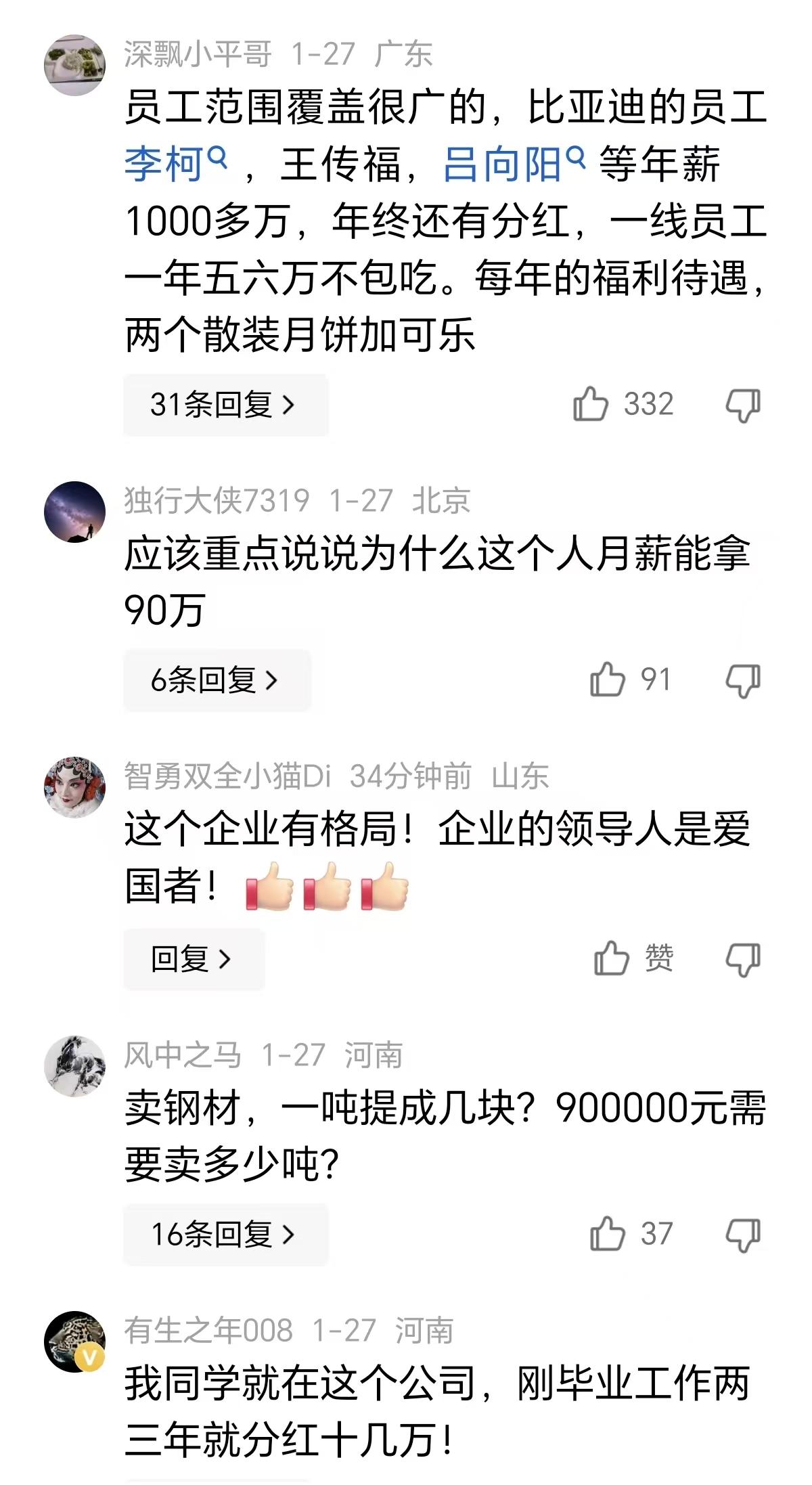 “羡慕吗?”河南某企业有员工月薪90万。该企业董事长表示,连续好几年有人年薪300万,月薪就是25万,还不算奖金。 这样的收入水平的确震撼,就是换成年薪,这个数字也相当有吸引力,怎能不让人羡慕。 羡慕归羡慕,我也应该冷静地看待这样的收入水平。 这么高的月薪,应该是业务人员的提成收入,并不是职能部门人员所发的相对固定的工资。 也就是说,高收入是高产出换来的,是创造了相应价值的那些员工才能拿到的工资。 所以,我们可以羡慕人家的高工资,但应该知道,我们不能既要又要,想“躺赚”是做不到的。 相应地,我们也要有“本事”才行。 与其羡慕人家的高工资,不如羡慕他们的“本事”,以及高工资背后的辛苦付出。 有的网友不理解,就算员工很优秀,的确给企业创造了相应的价值,但确实要给这么高的工资吗? 只要比同行给的工资高一些不就挺好了吗? 就像有的企业给员工股权激励(也就是除了月工资之外还有利润分红), 有的企业没有股权激励,这主要取决于企业老板的格局和经营理念。 是否给员工分红,不是必须的,而是可给可不给的。 同样,河南这家企业的董事长给出这么高的工资也不是必须的,但他愿意用这么高的工资去吸引和留住优秀人才,这也无可厚非。 因此,理性地看待这件事的话,其实也不必那么羡慕,一方面需要我们能遇到那样的企业,另一方面,也需要自己有那么大的本事,并且愿意不懈努力才行。